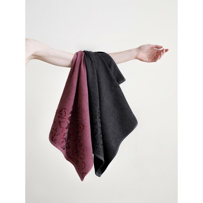 Полотенце махровое 3 шт, 30х50, 50х90, 70х140, Diana, Нуар, цвет: Винный