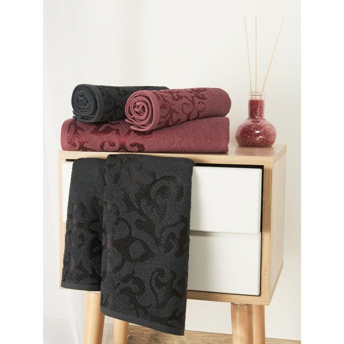Набор полотенец махровых Diana "Пейсли", 4 шт. Вишня/Графит, 100% хлопок