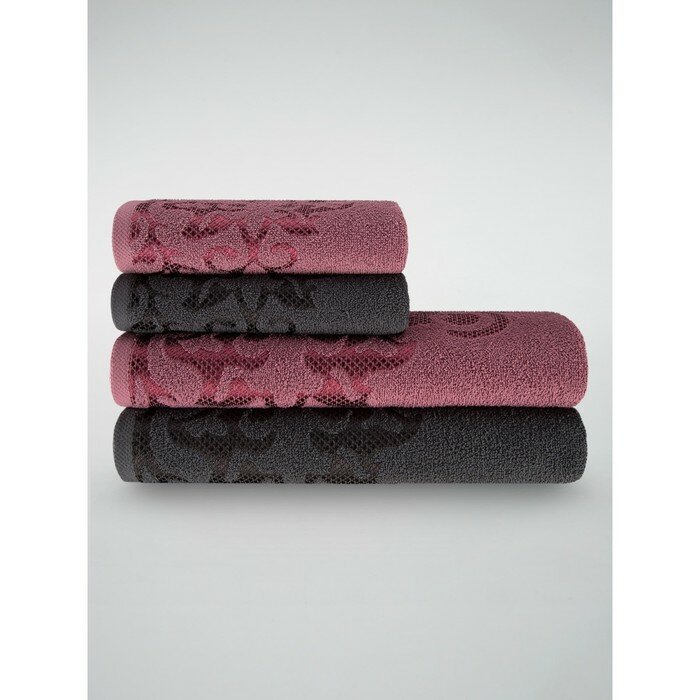 Набор полотенец махровых Diana "Пейсли", 4 шт, Вишня/Графит, 100% хлопок