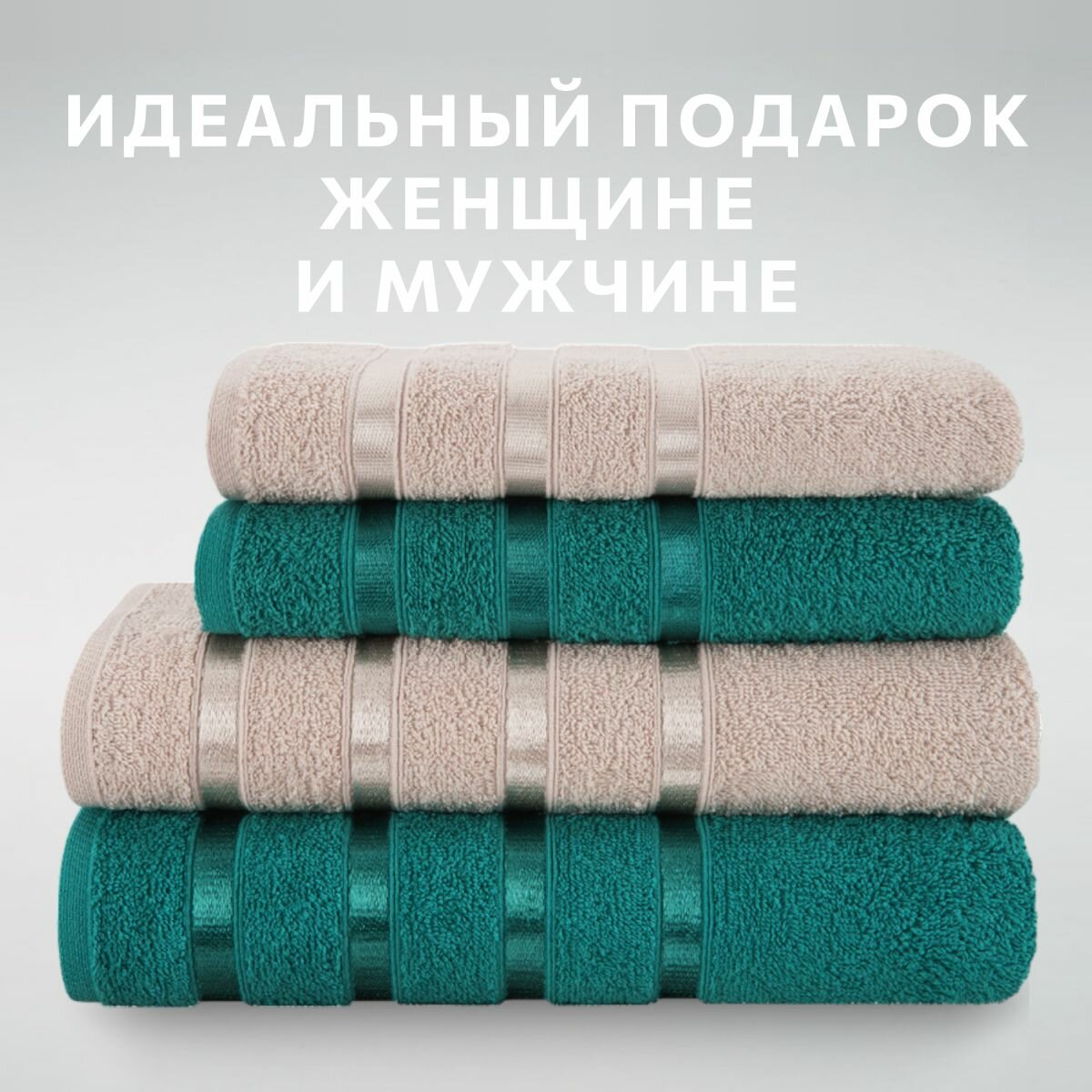 Набор полотенец махровых Diana "Авеню", 4 шт. Изумруд/Мокко, 100% хлопок