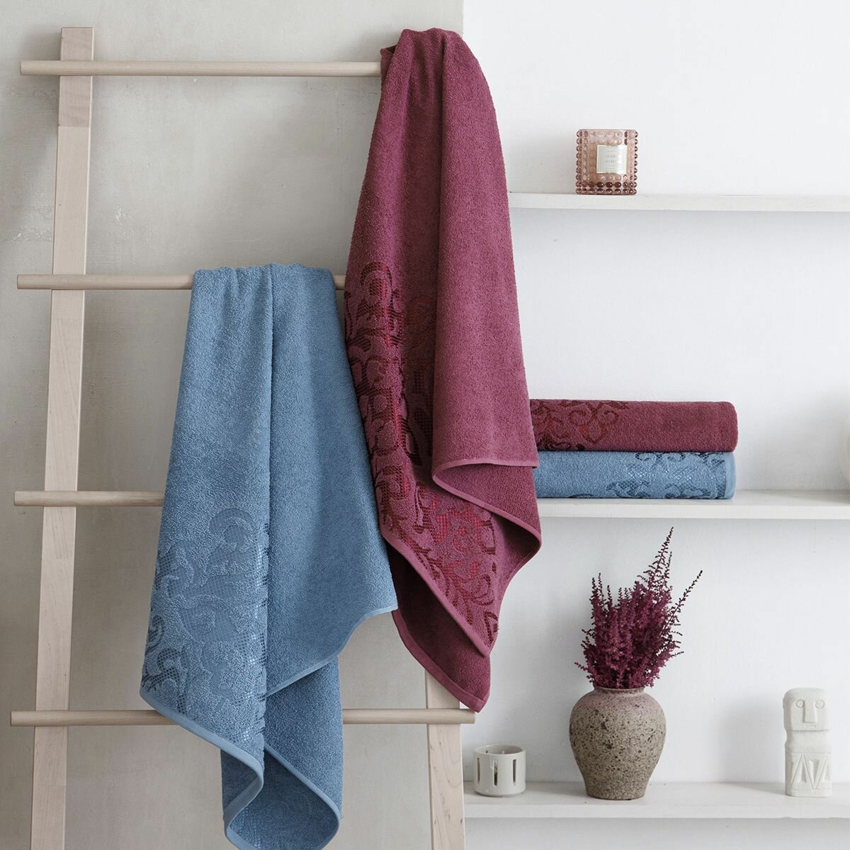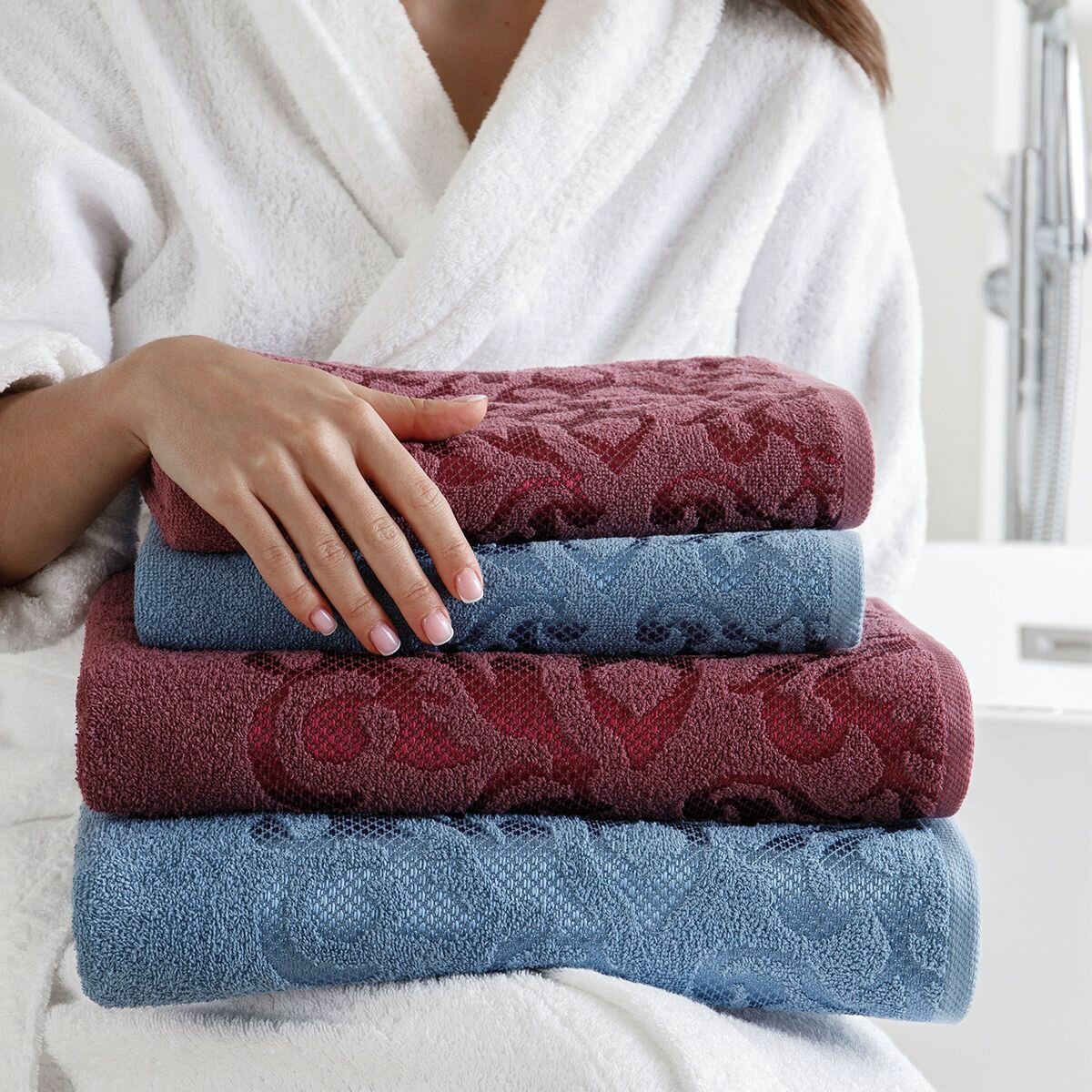 Набор полотенец махровых Diana "Пейсли", 4 шт, Вишня/Темно голубой, 100% хлопок