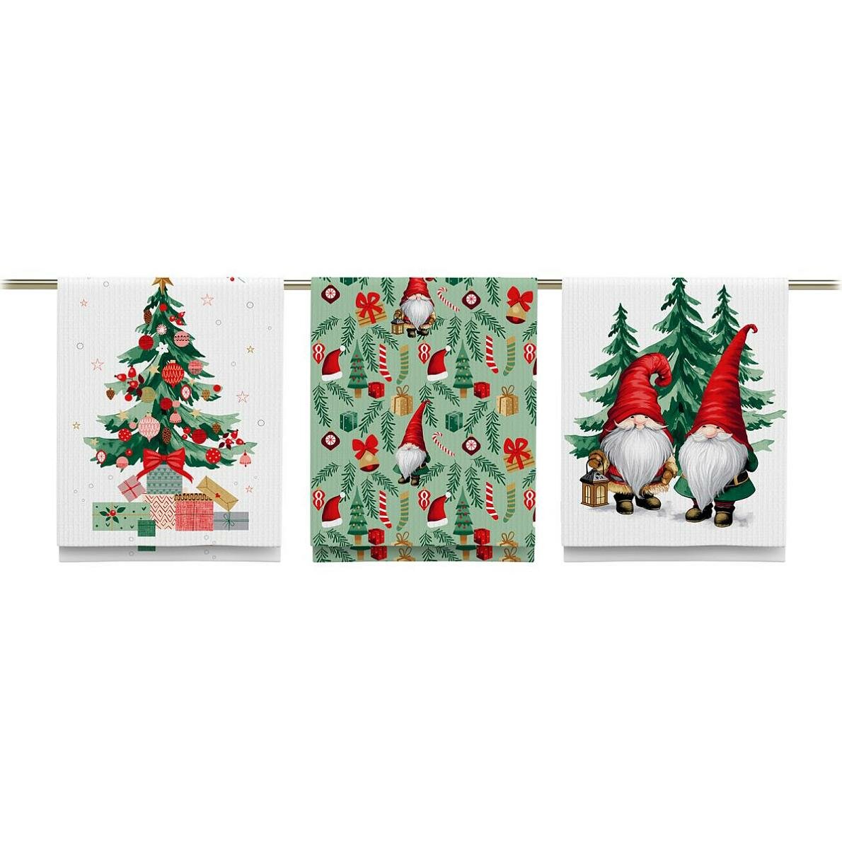 Купить Набор кухонных полотенец 3 шт. 48х56 вафельные "Новогодние гномы"