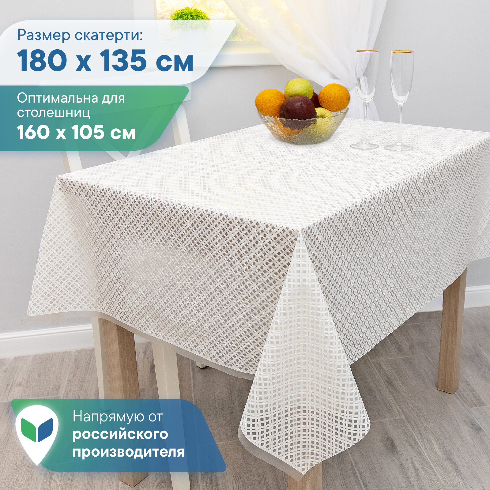 Скатерть клеенка VILINA "Элегия" прямоугольная водонепроницаемая на стол для кухни 135х180 см. 011-white