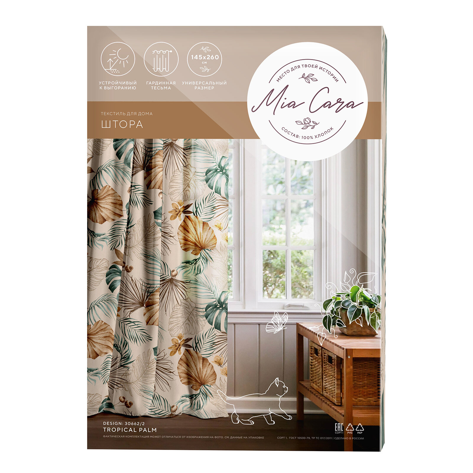 Купить Штора рогожка 145х260 "Mia Cara" рис 30662-2 Tropical palm