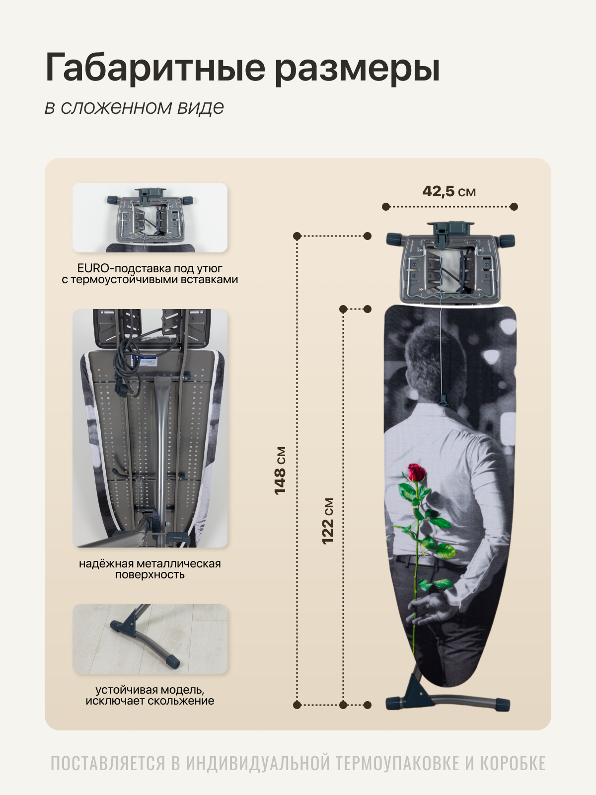 Гладильная Доска Ника Грант "Мужчина с розой" с розеткой и полкой, 120x40 см интересное: