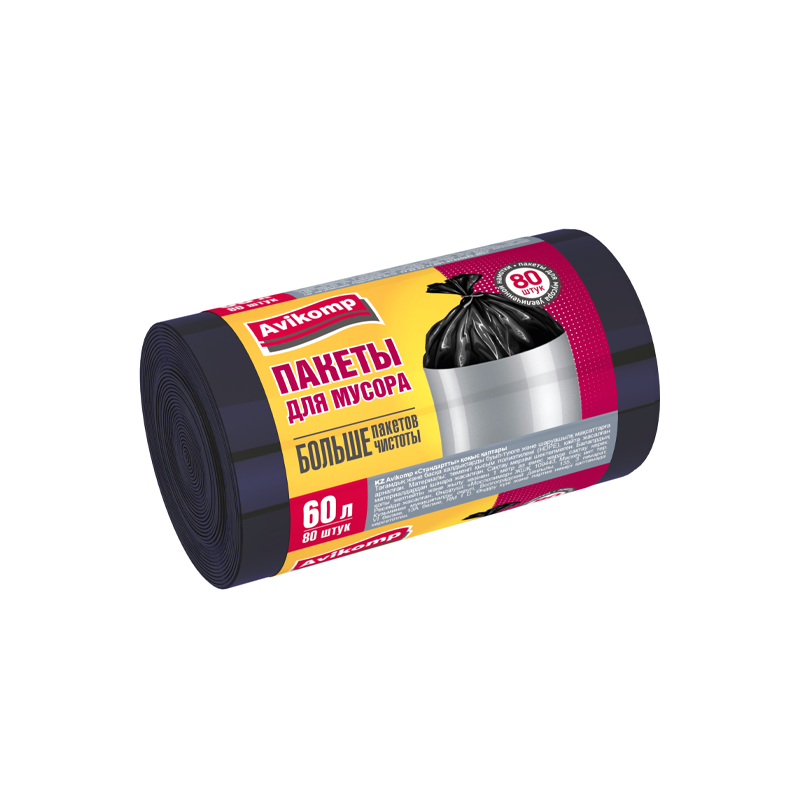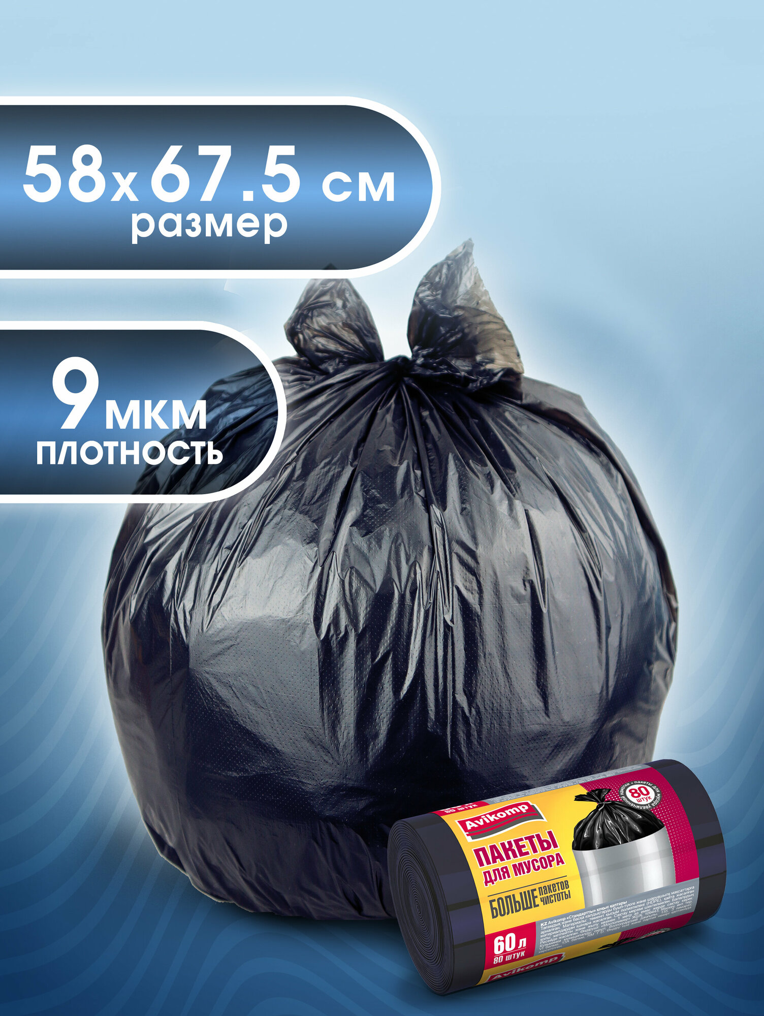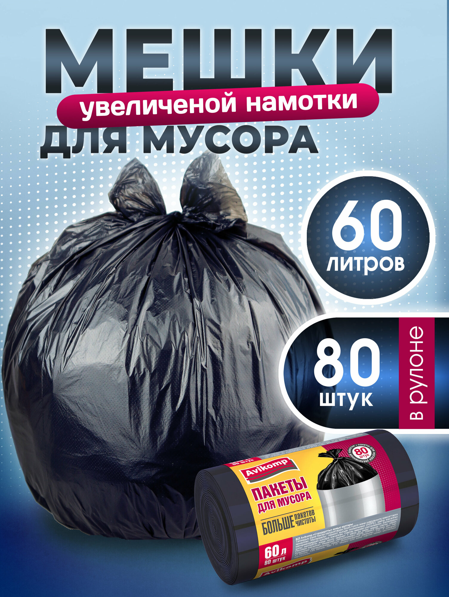Пакеты для мусора 60 литров, 80 штук, черные, Avikomp