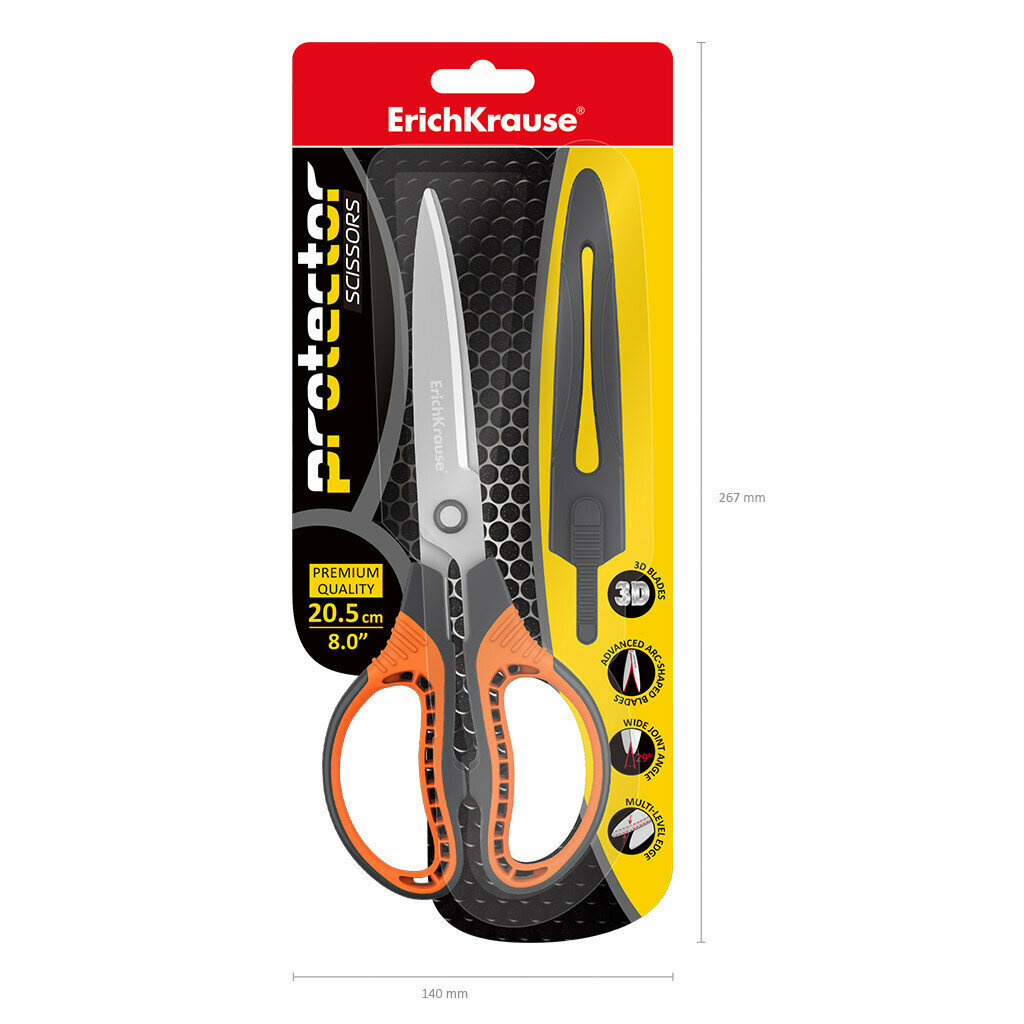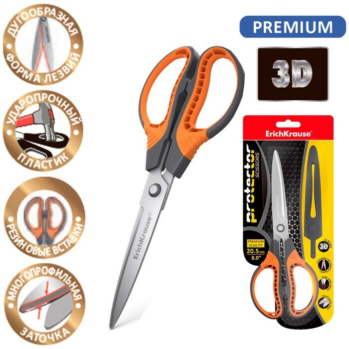 СохранитьНожницы 20.5см ErichKrause "Protector" с чехлом, серо-оранжевый 48057 5080748 интересное: