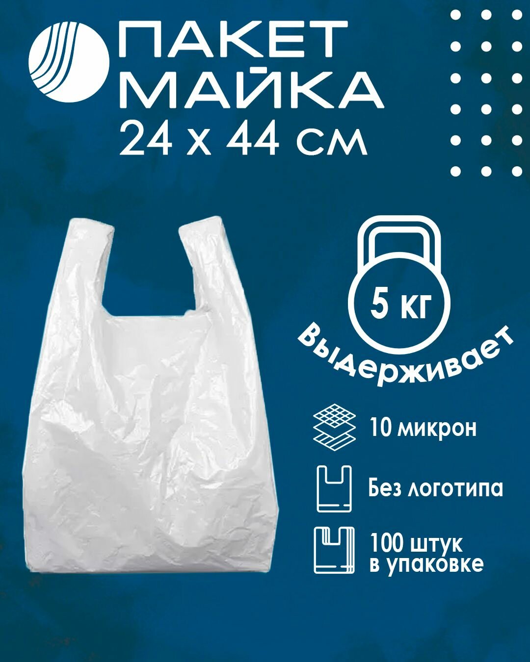 Пакет майка Волга Полимер 43х73см, белый 100 штук, без логотипа, 15мкм
