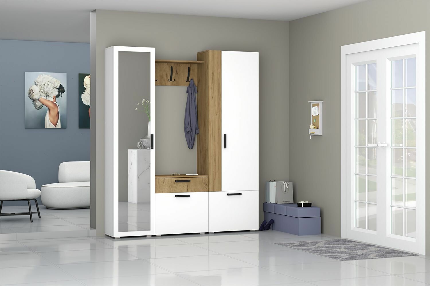 Купить Прихожая "Прайм - 1" Белый Текстурный/Дуб Крафт Золотой