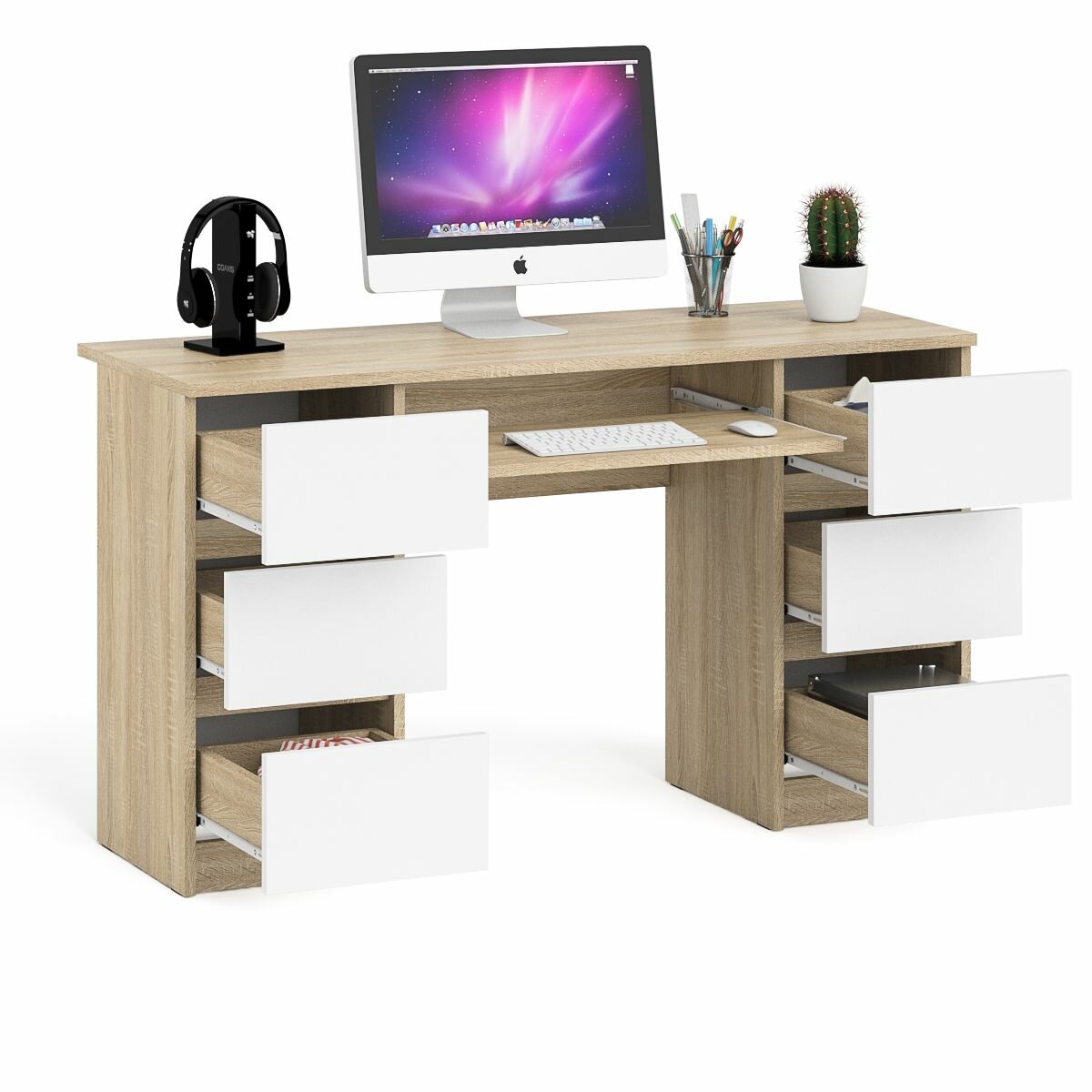 СохранитьКомпьютерный стол с двумя тумбами Мори МС-2, цвет дуб сонома/белый, ШхГхВ 135,4х50х76,6 см. интересное: