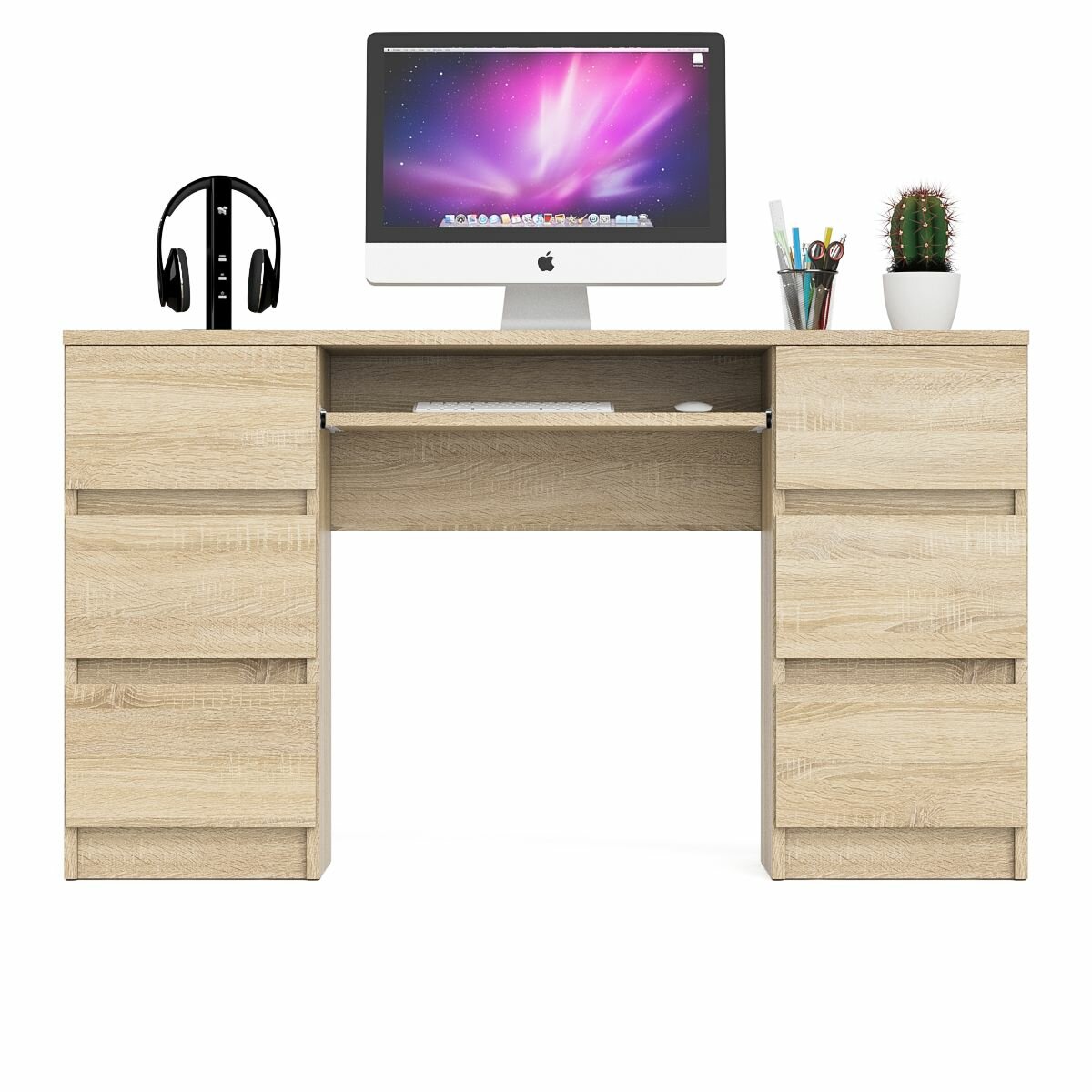 Компьютерный стол с двумя тумбами Мори МС-2, цвет дуб сонома/белый, ШхГхВ 135,4х50х76,6 см.