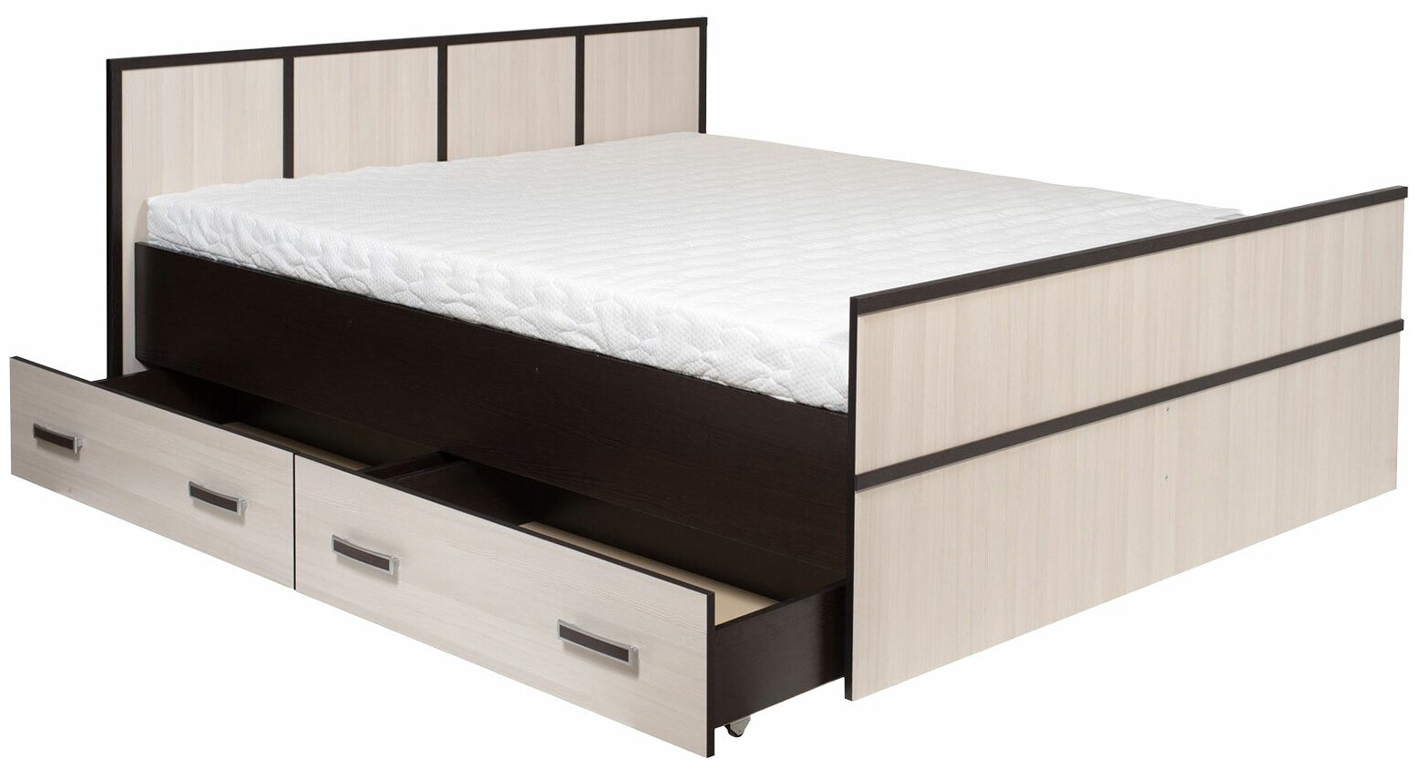 Двуспальная кровать Сакура 160х200 см, с ящиками, с изножьем, со спинкой, с реечным основанием, Венге / Лоредо