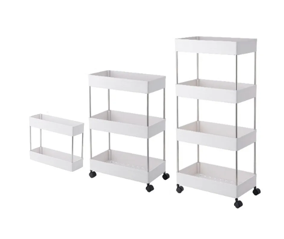 Купить Белый стеллаж-этажерка для кухни, ванной на колесиках, 4 полки