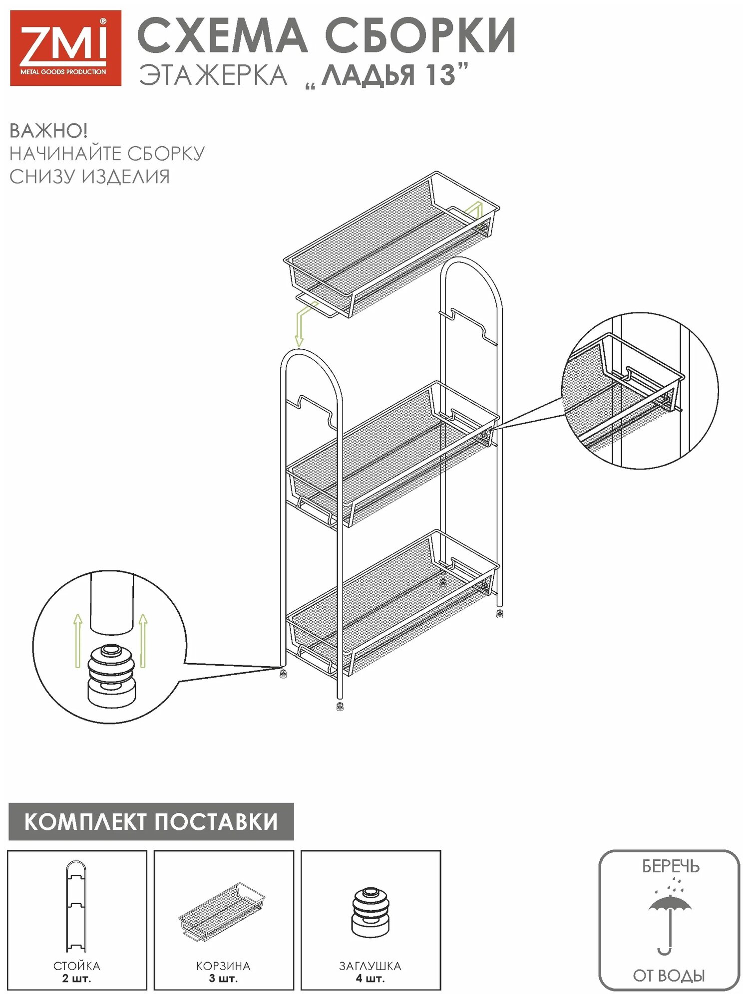 | Дополнительная информация | Нагрузка на 1 корзину до 10 кг; сборка без инструментов |