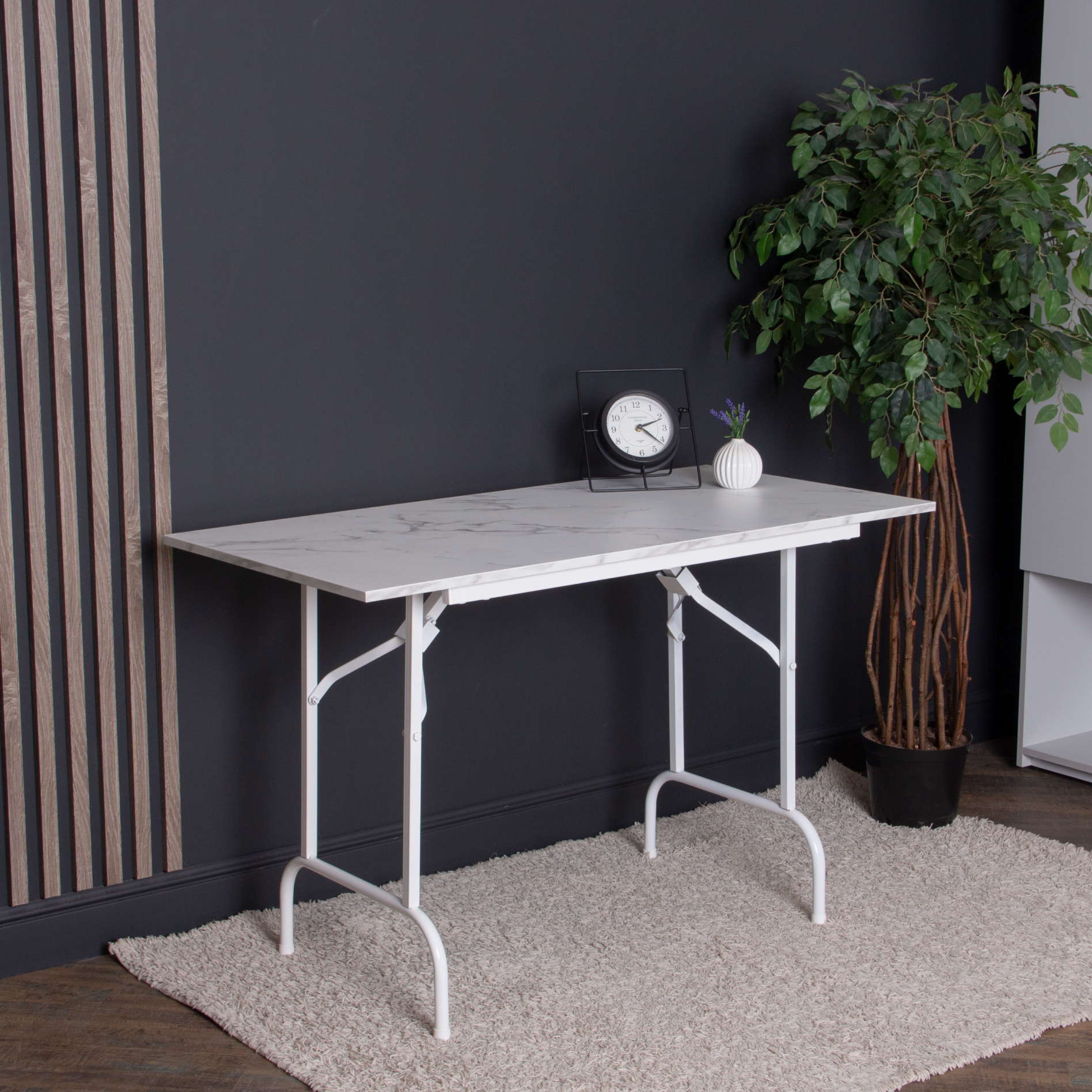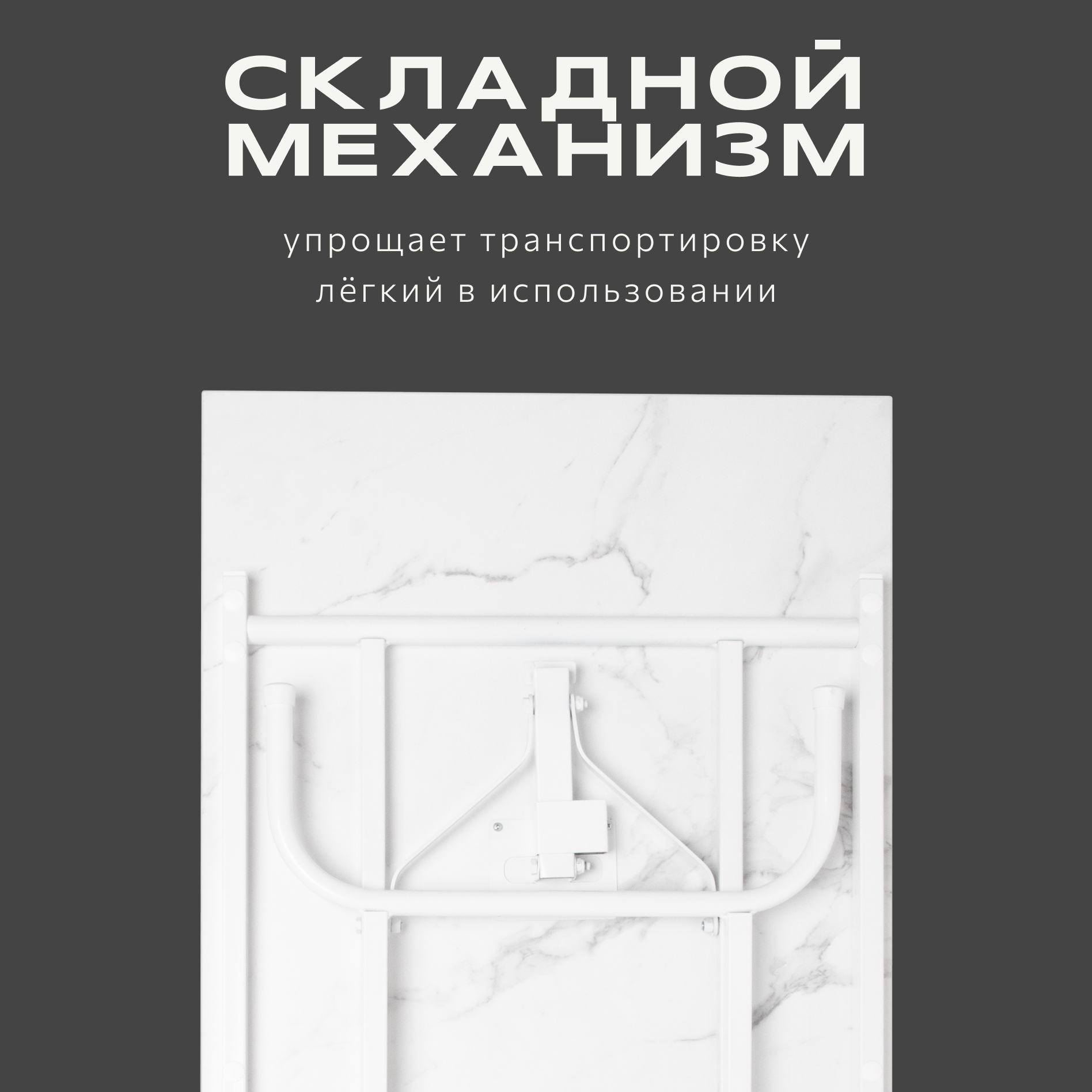 Купить Стол складной раскладной прямоугольный кухонный, письменный, 60х120х75 см столешница - под мрамор, каркас - белый