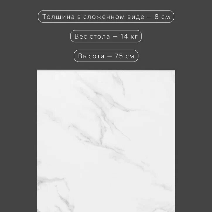 СохранитьСтол складной раскладной прямоугольный кухонный, письменный, 60х120х75 см столешница - под мрамор, каркас - белый интересное: