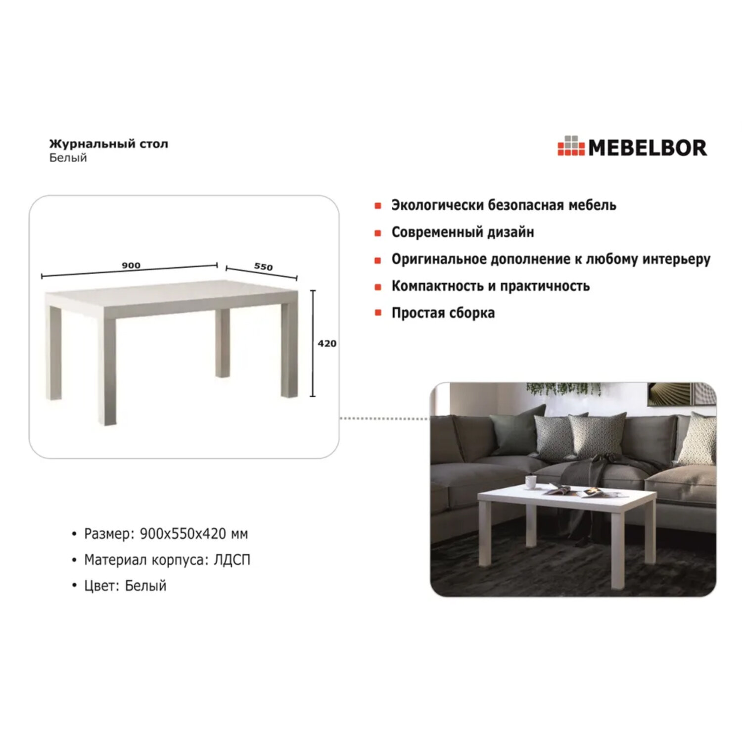 Кофейный столик Боровичи-Мебель Белый, (ШхД) 550х900 мм интересное: