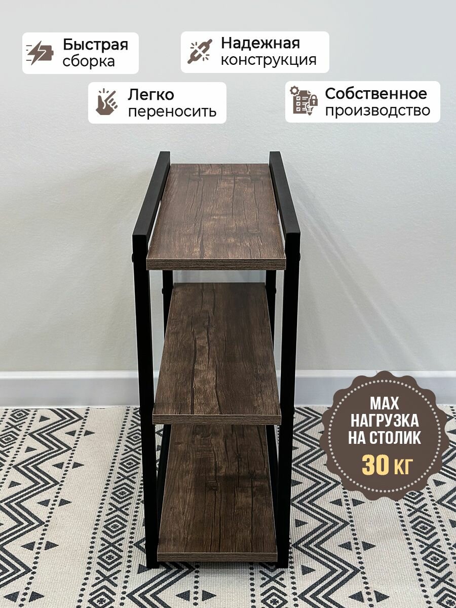 Стол приставной MEBEL.VSTILE придиванный, прикроватный в стиле лофт сонома черный