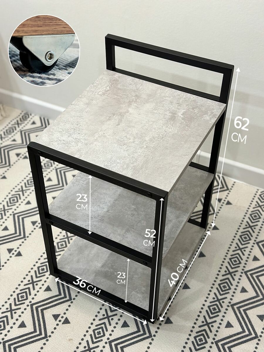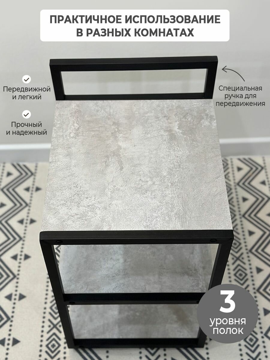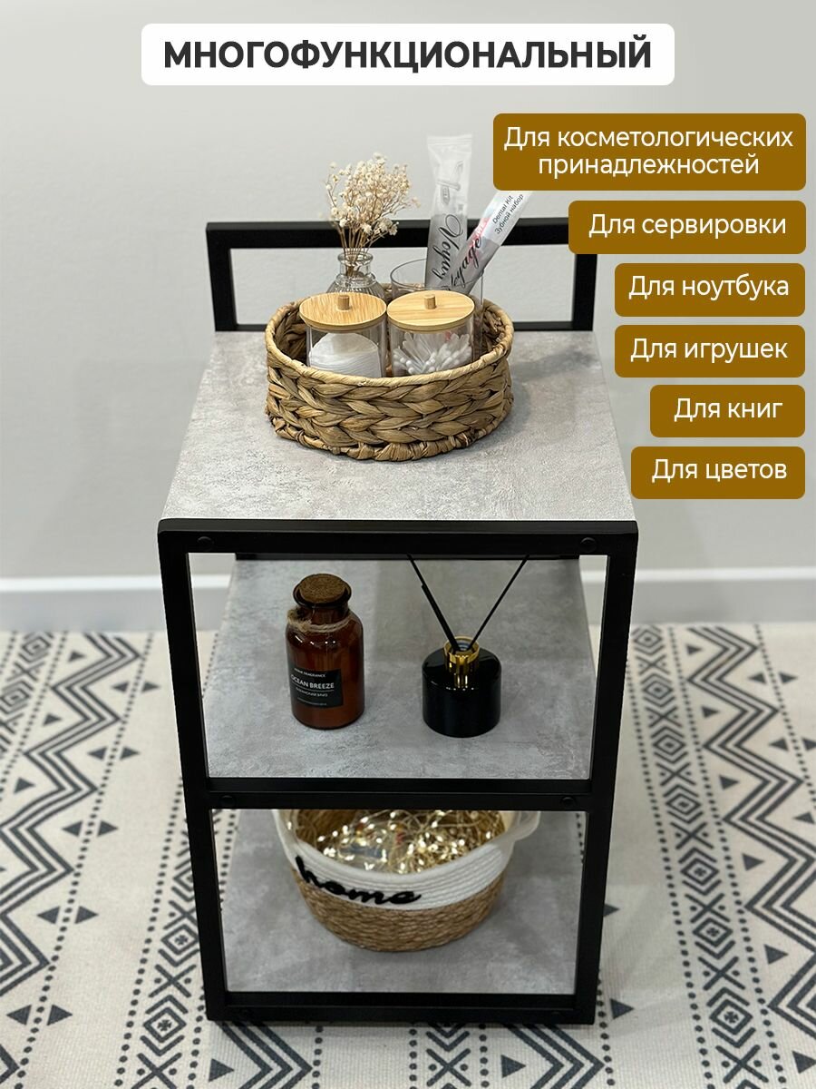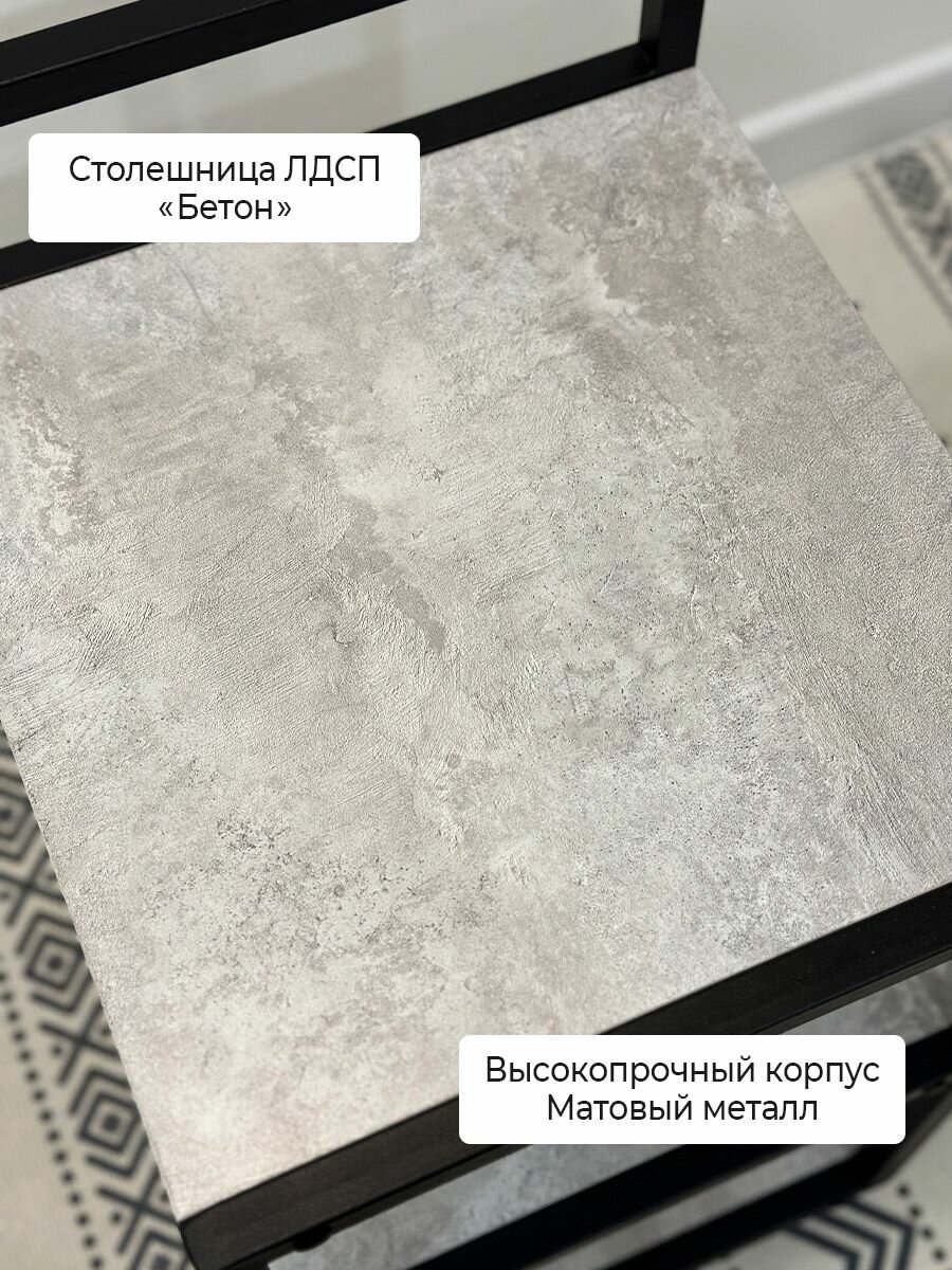 Прикроватный приставной журнальный столик MEBELVSTILE Loft, 60 x 56 x 23 см, бетон/чёрный, лофт