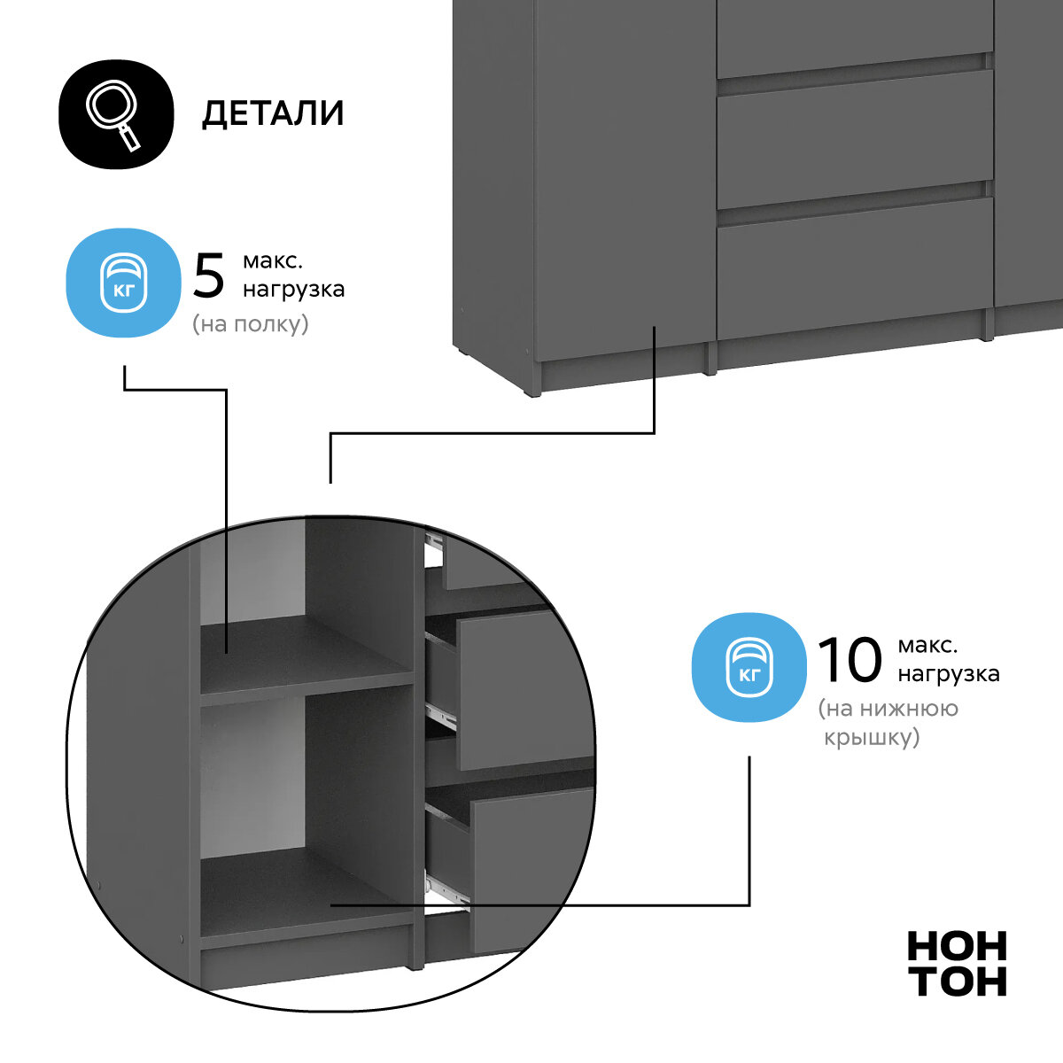 | Максимальная нагрузка на ящик | 5 кг |