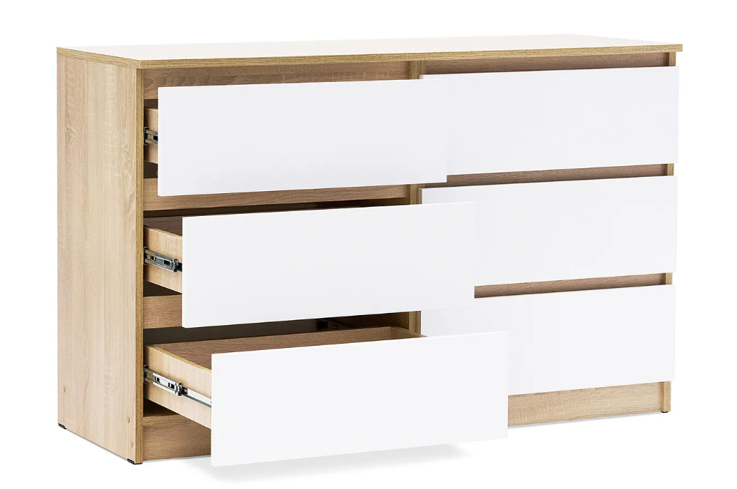 Купить Комод Челси ЛДСП 6 ящиков, белый глянец/дуб сонома, 120,2 х 76,8 х 45 см