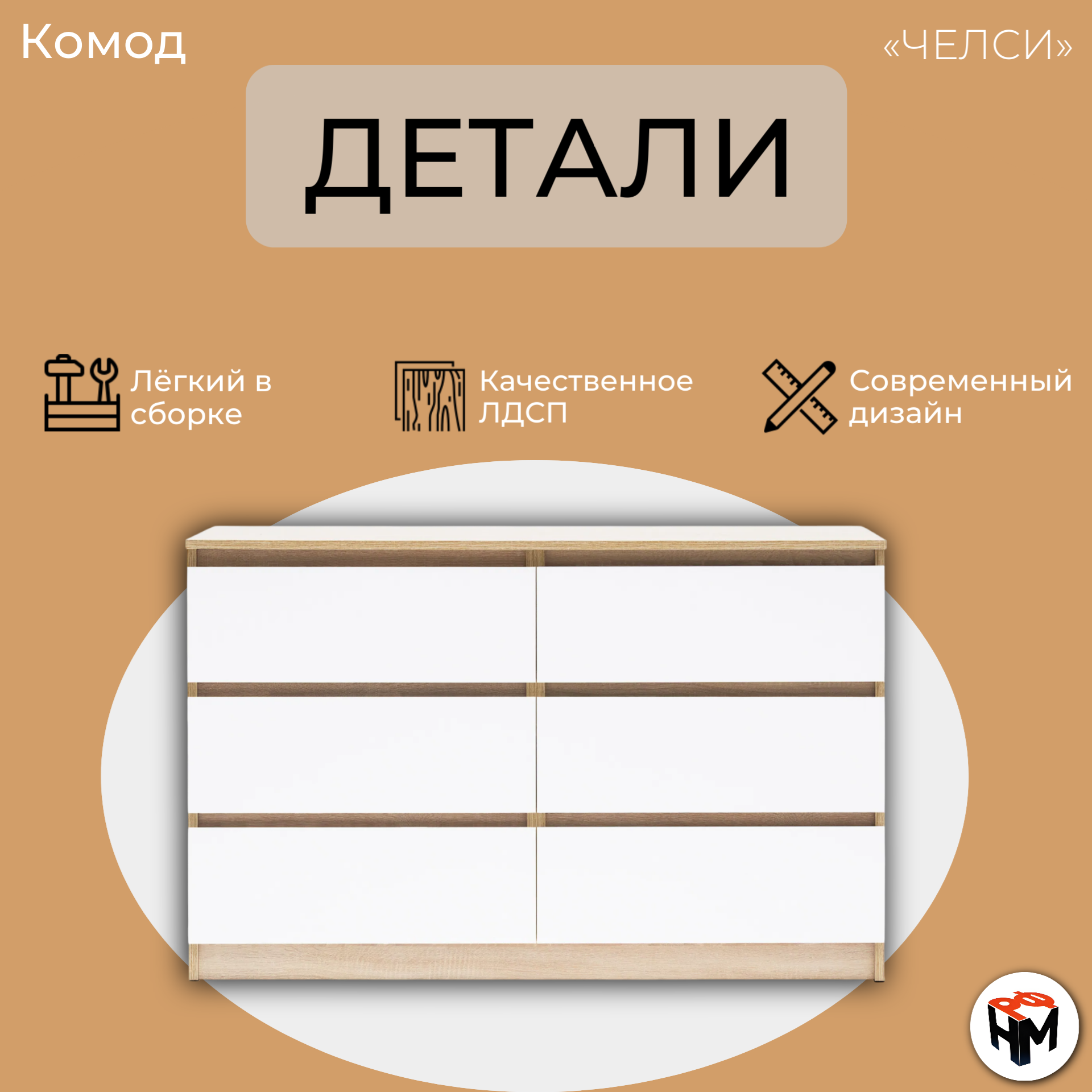 Комод Челси ЛДСП 6 ящиков, белый глянец/дуб сонома, 120,2 х 76,8 х 45 см интересное: