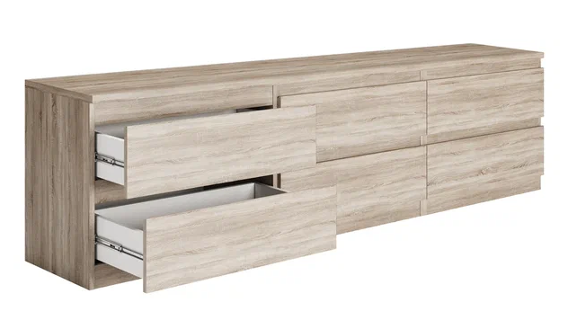 Тумба под ТВ, 194х54 см, 6 ящиков, сонома