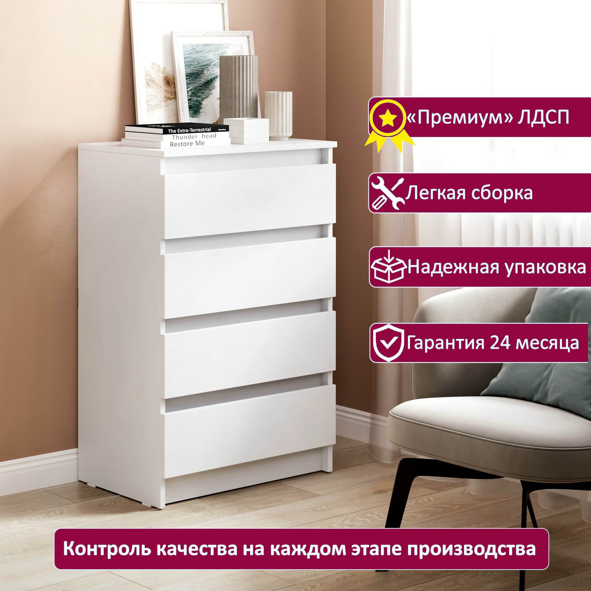 Комод Лайт 2, Белый, 60х93х40см, с 4 ящиками
