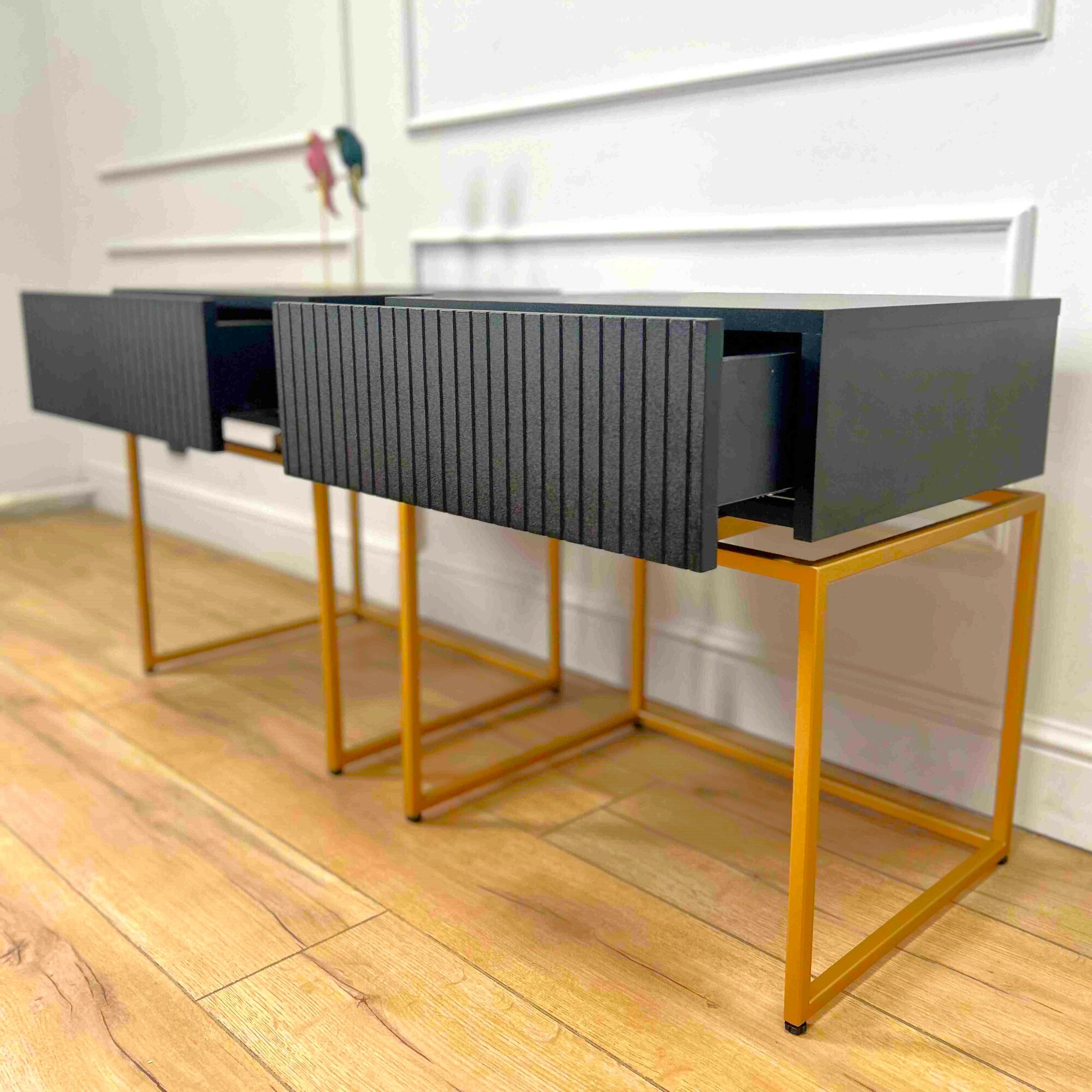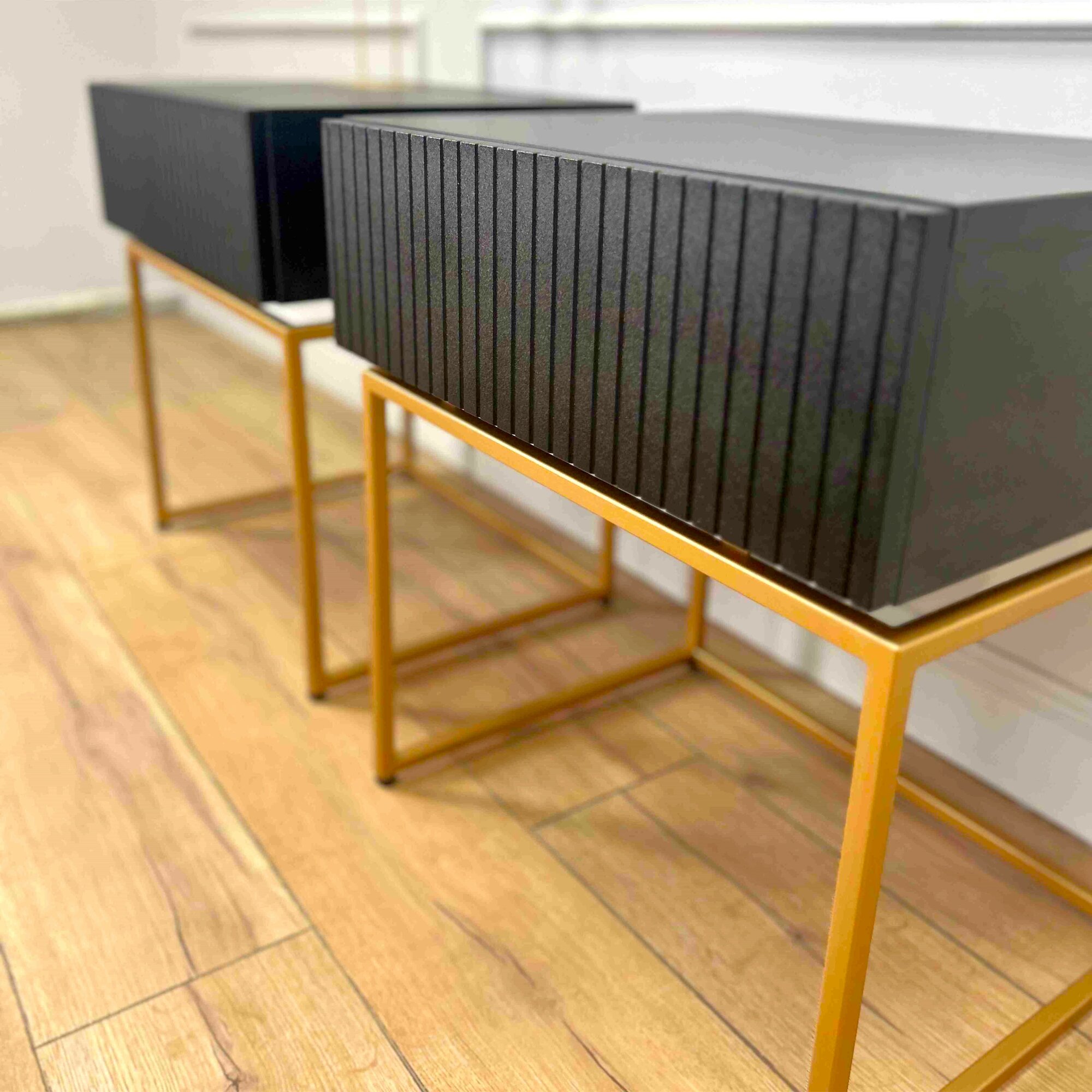 Тумба прикроватная черная с ящиком, тумбочка напольная на золотых ножках, мебель для спальни Life 50х40х56 см