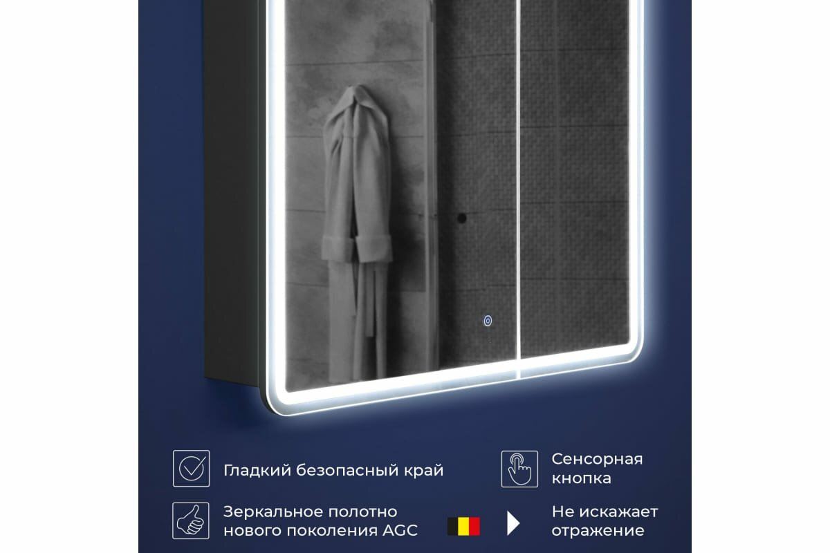 Зеркальный шкаф с подсветкой Итана Miro 60 600х150х790 1С правое Графит