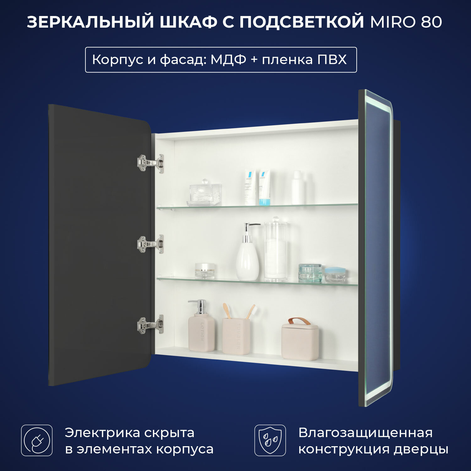 Купить Зеркальный шкаф с подсветкой Итана Miro 80 800х150х790 Графит