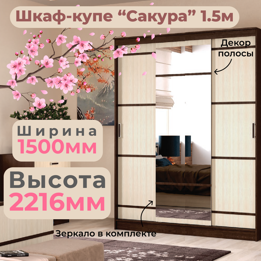 "Сакура" шкаф-купе 1,5м (1500х2216х610) венге/лоредо снято С производства шт