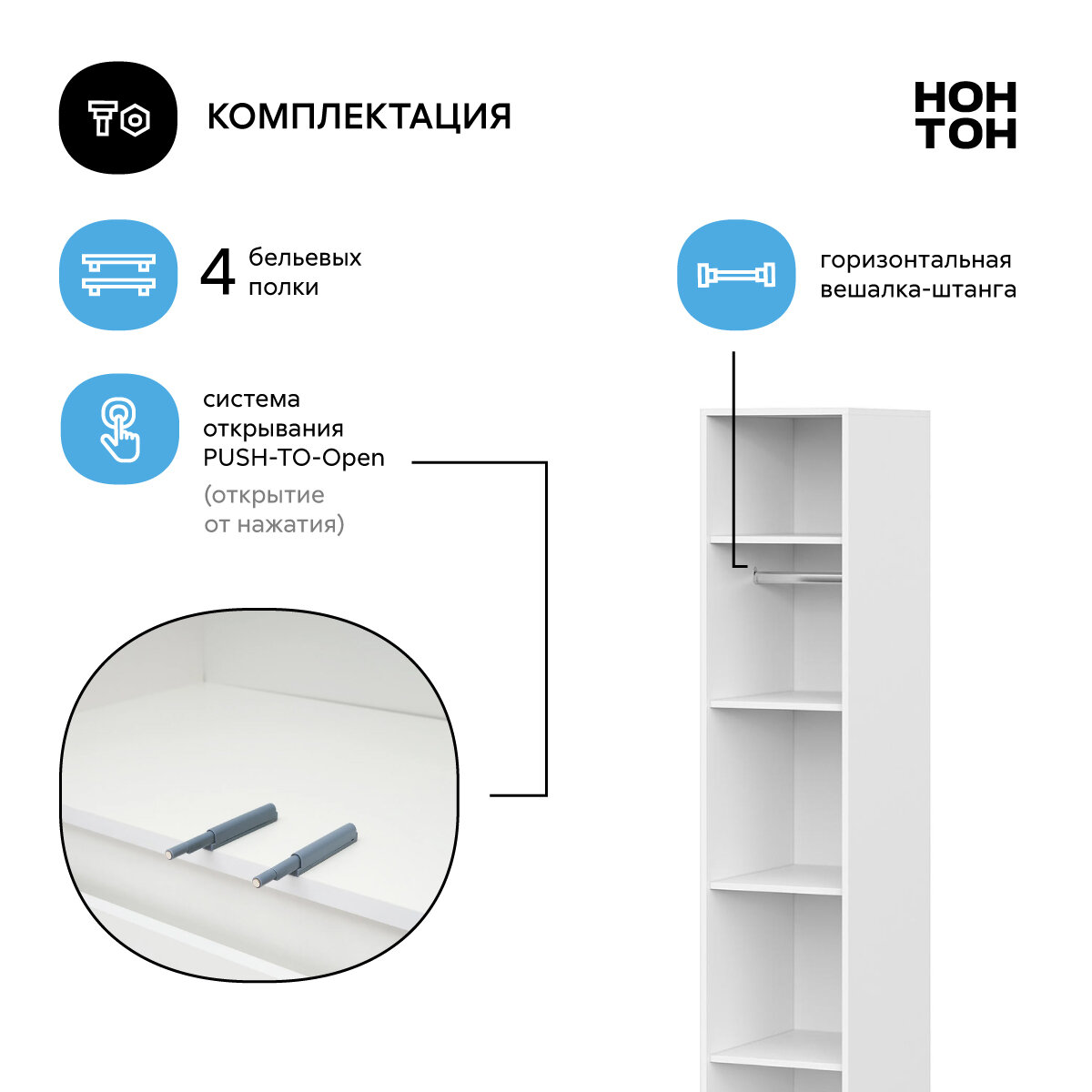 Шкаф для одежды распашной Нонтон Луас, 120 см, 7 полок и штанга, белый глянец