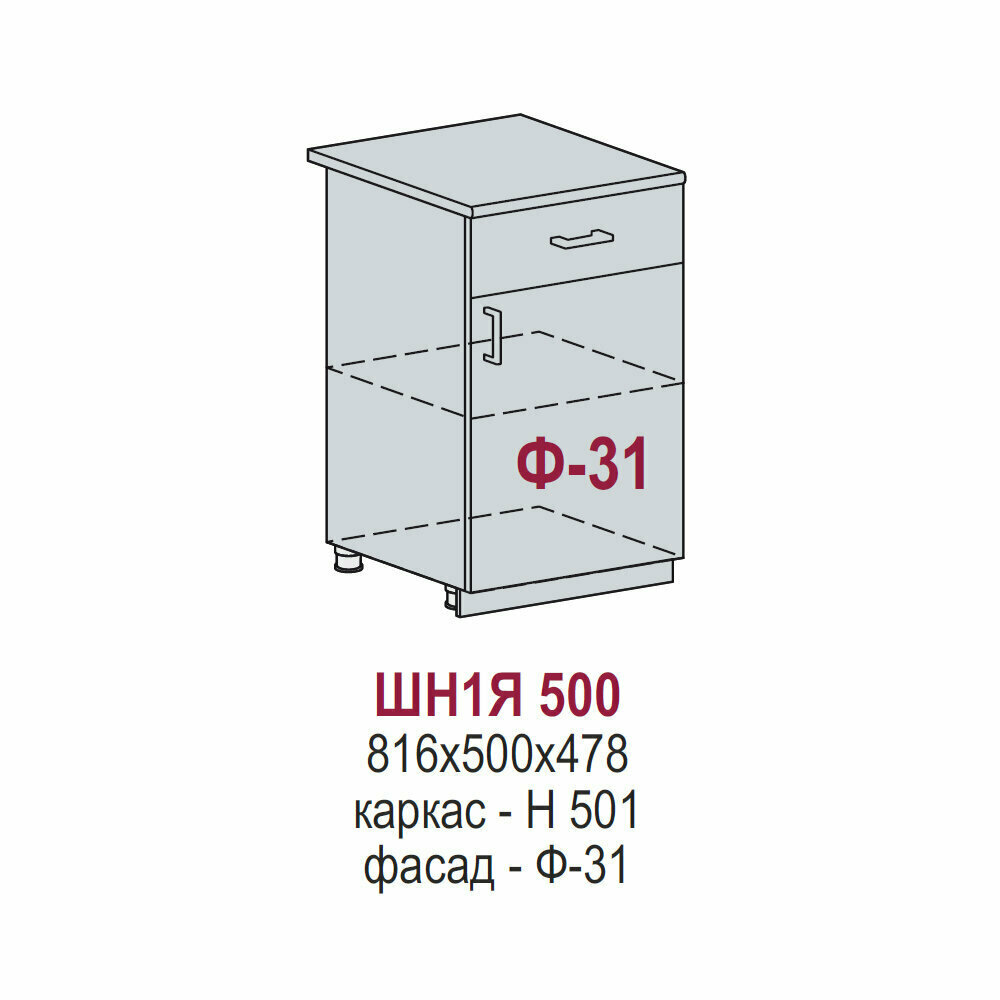 СохранитьКухонный шкаф напольный, без столешницы, Кухня Ницца, ШН1Я500, Вотан / Дуб Оливковый Фактурный интересное: