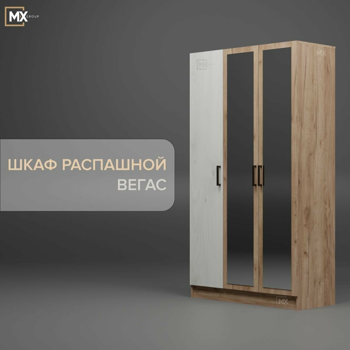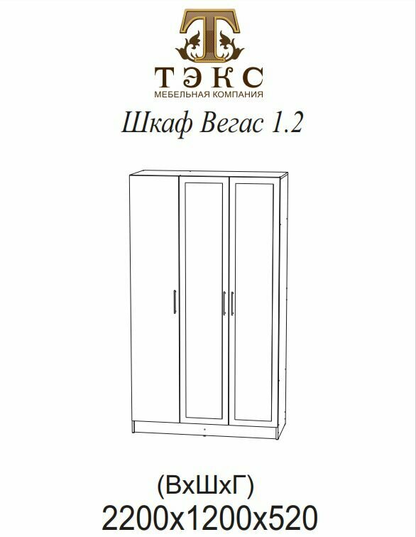 Шкаф Тэкс Вегас 1600, (160х220х52см) дуб крафт табачный/дуб крафт белый