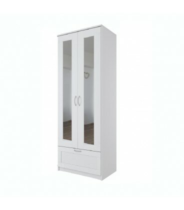 Сириус шкаф 2 двери и 1 ящик 78х59х220 белый (с 2 зеркалами)
