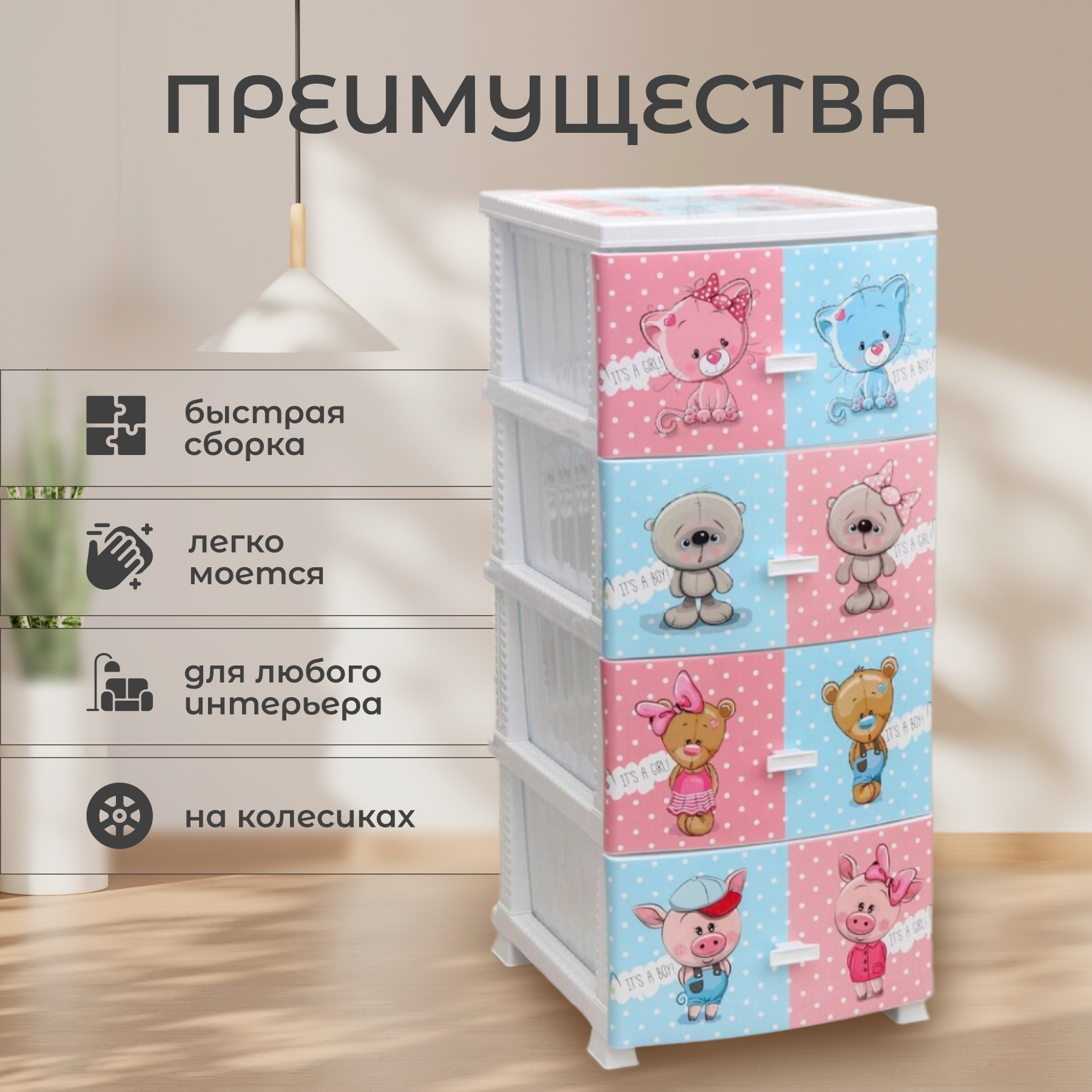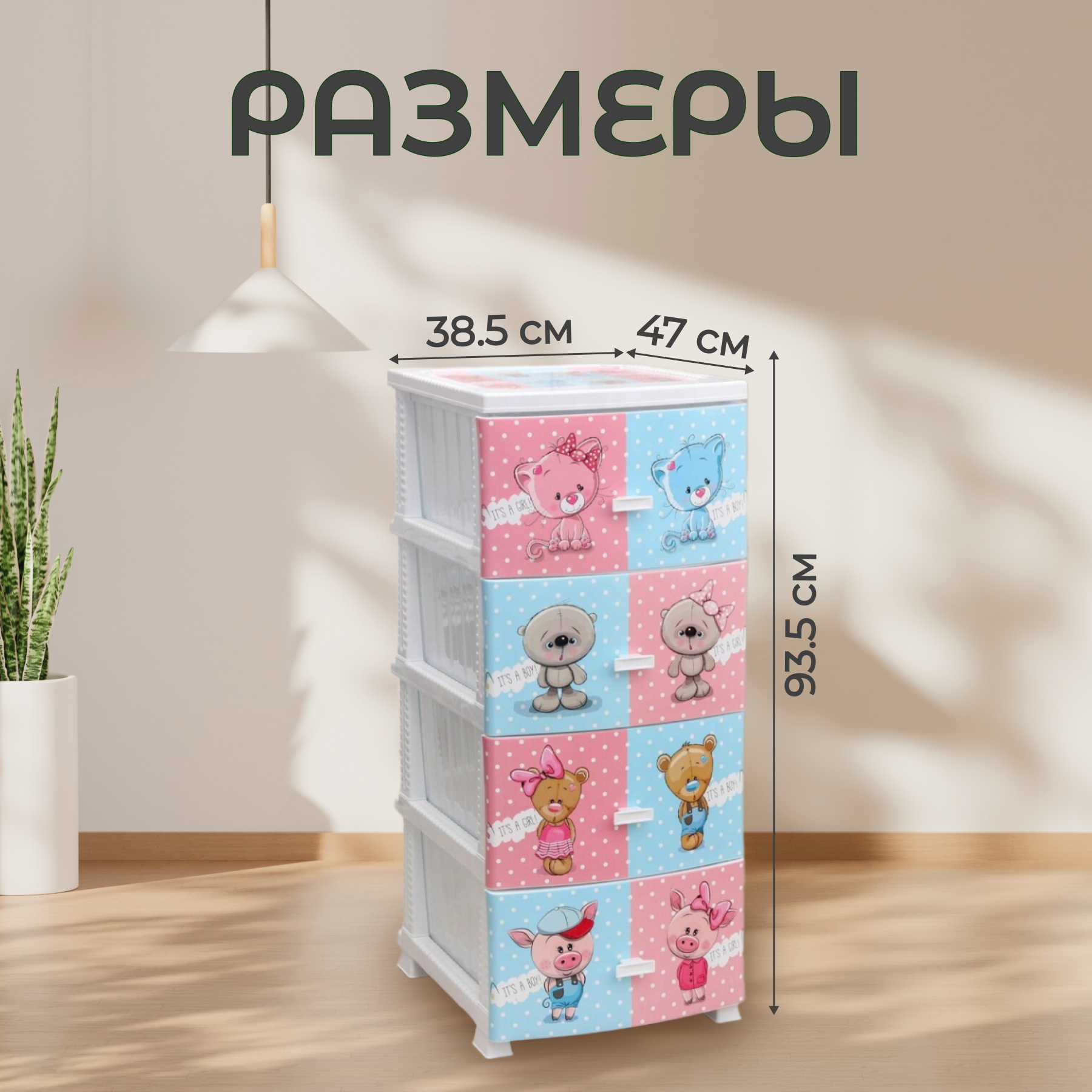 Купить Пластиковый комод с ящиками для вещей детский 4 ящика 38.5х47х93.5 см
