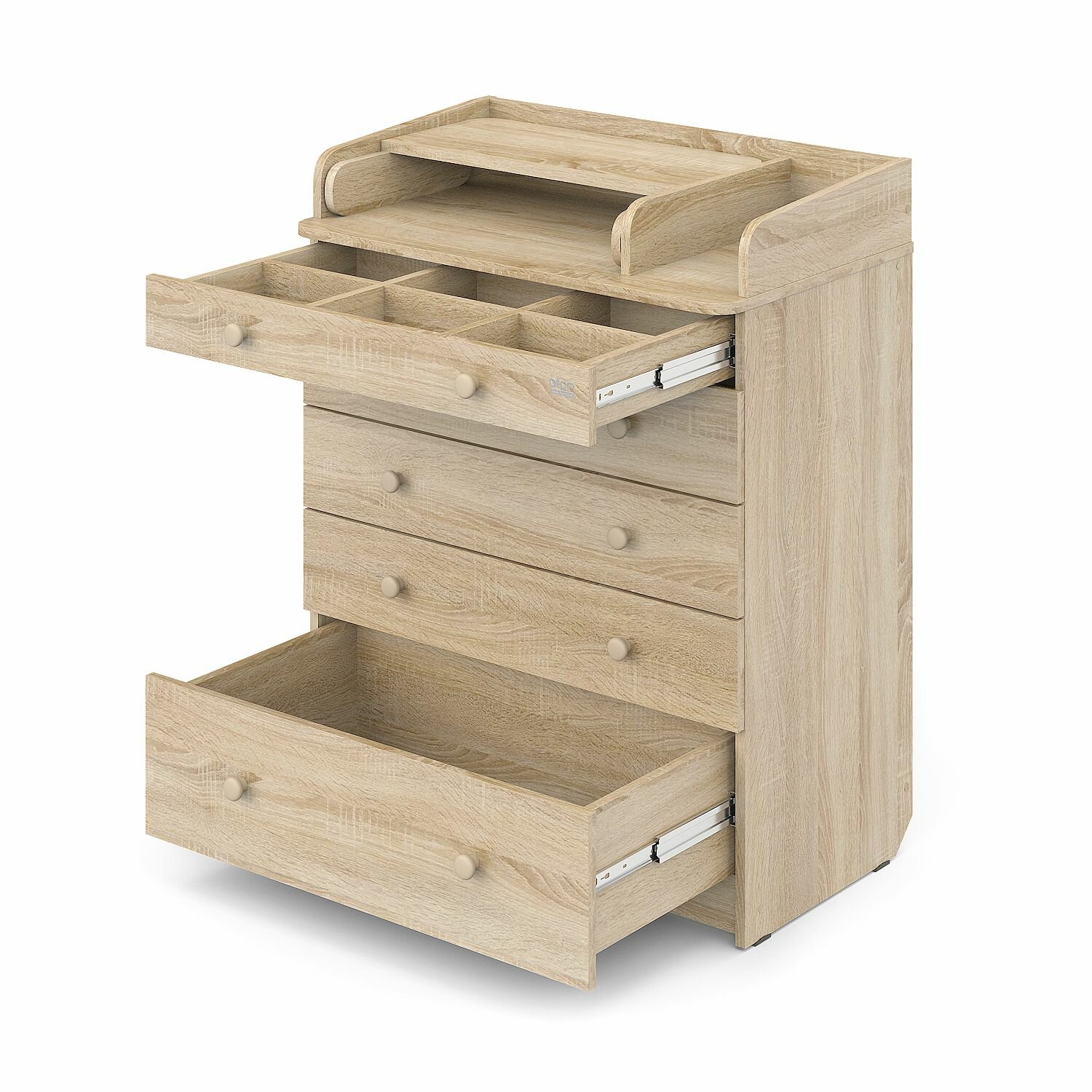 Комод пеленальный aton LEO, 5 ящиков с органайзером, дуб сонома