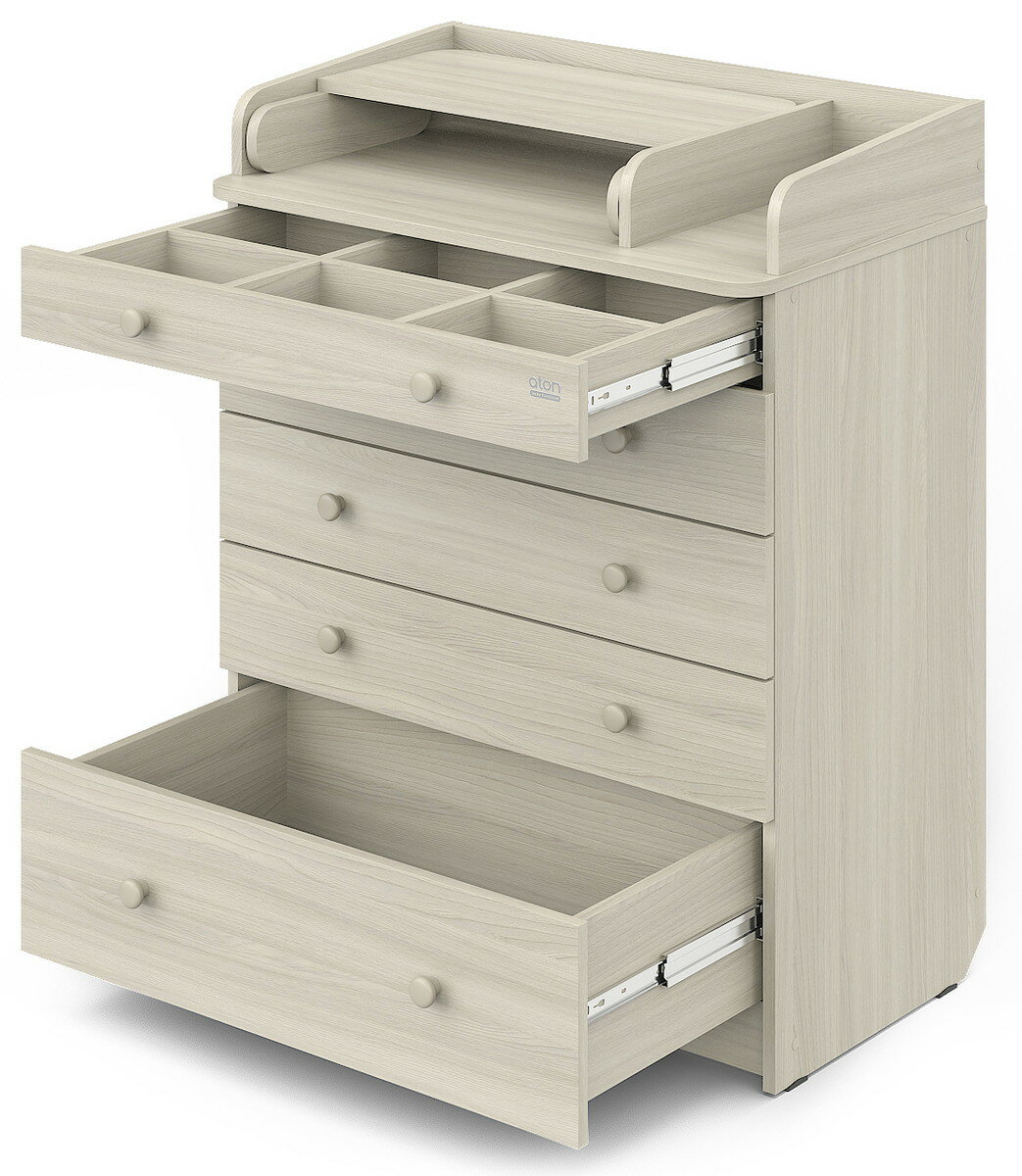 Комод пеленальный aton LEO, 5 ящиков с органайзером, шимо светлый