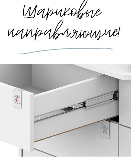 | Дополнительная информация | Возможно 3 варианта установки пеленального столика: слева, справа и по центру комода |