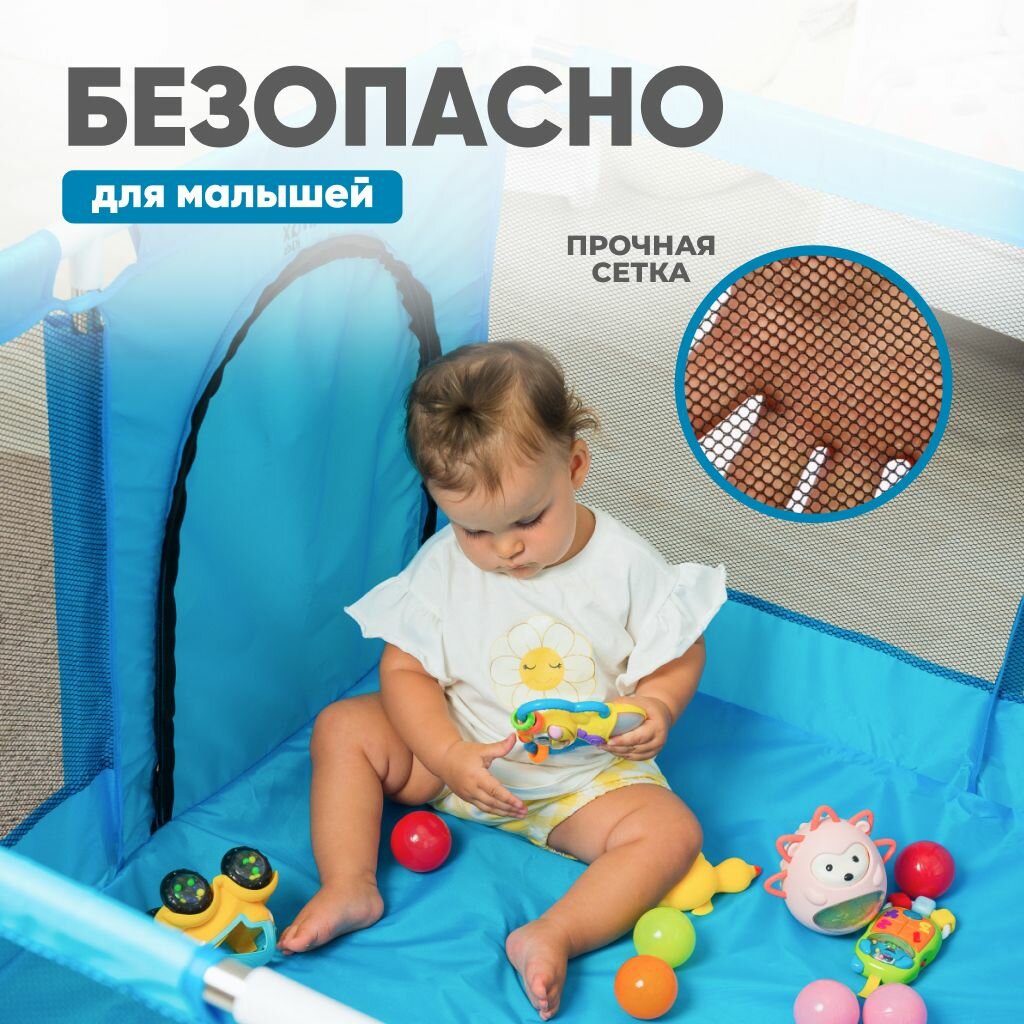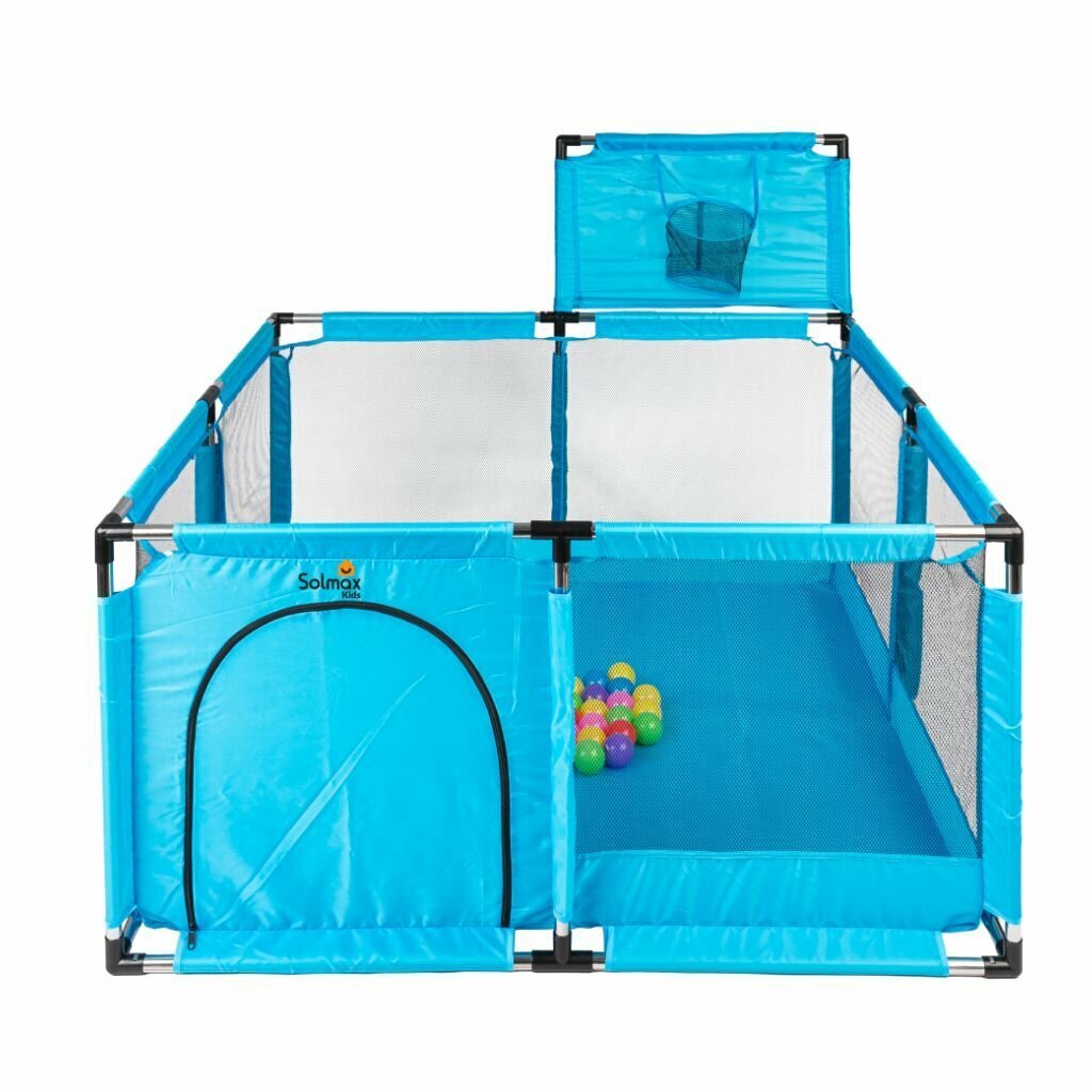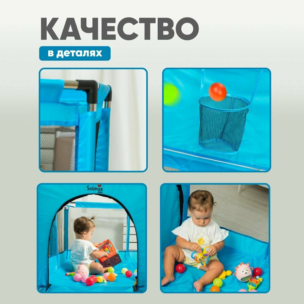Манеж детский напольный SOLMAX игровой с шариками для сухого бассейна, голубой, 64х64х125