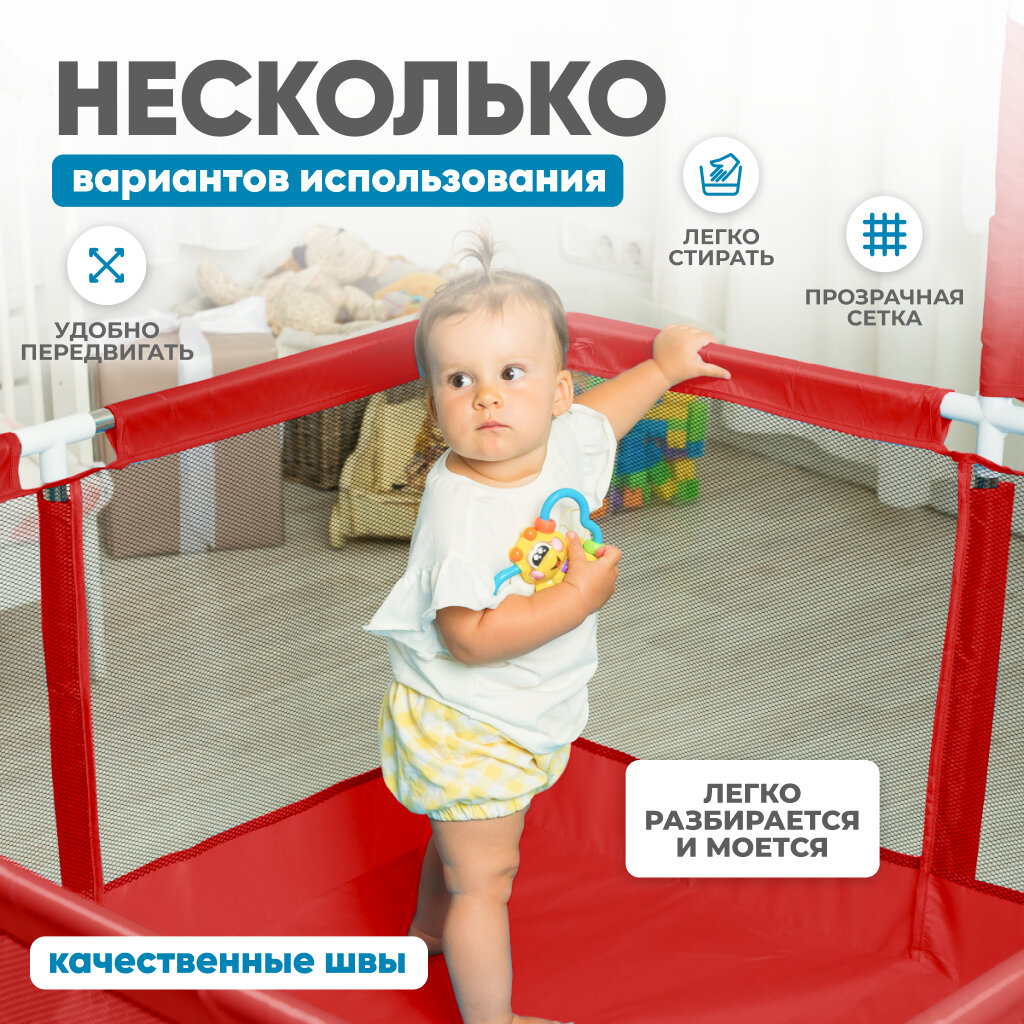 Манеж детский игровой SOLMAX для новорожденных с шариками в комплекте, красный интересное: