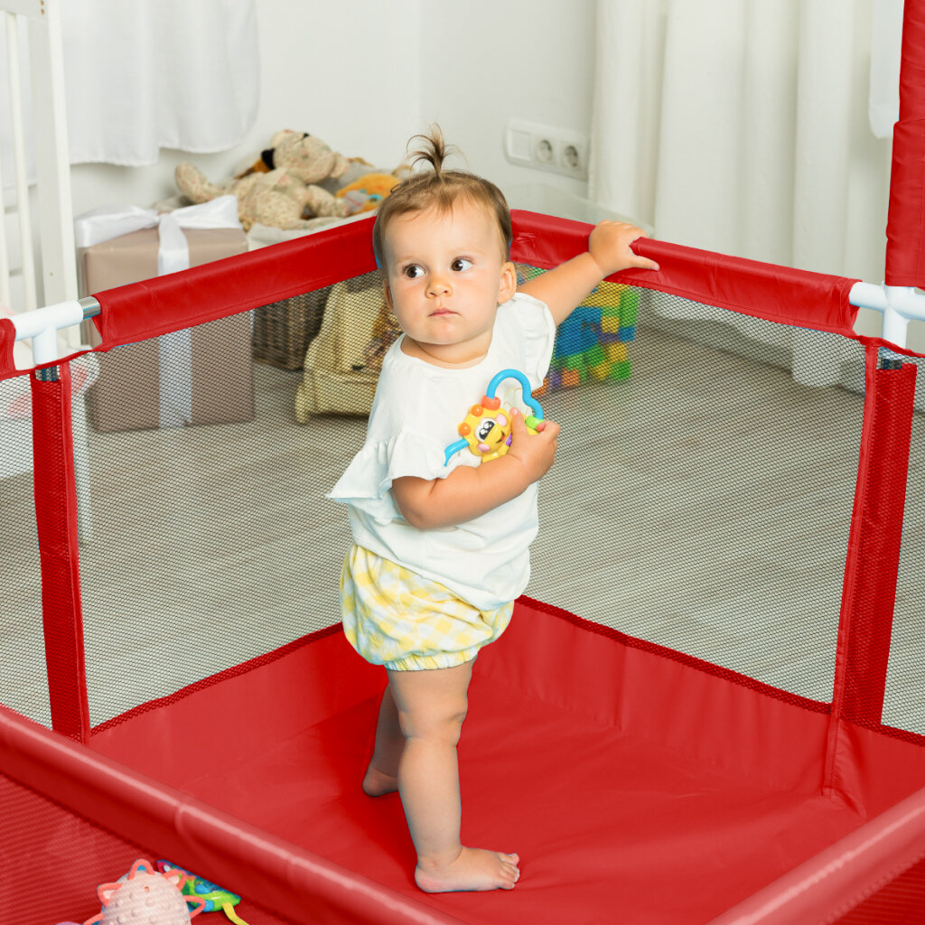Купить Манеж детский игровой SOLMAX для новорожденных с шариками в комплекте, красный
