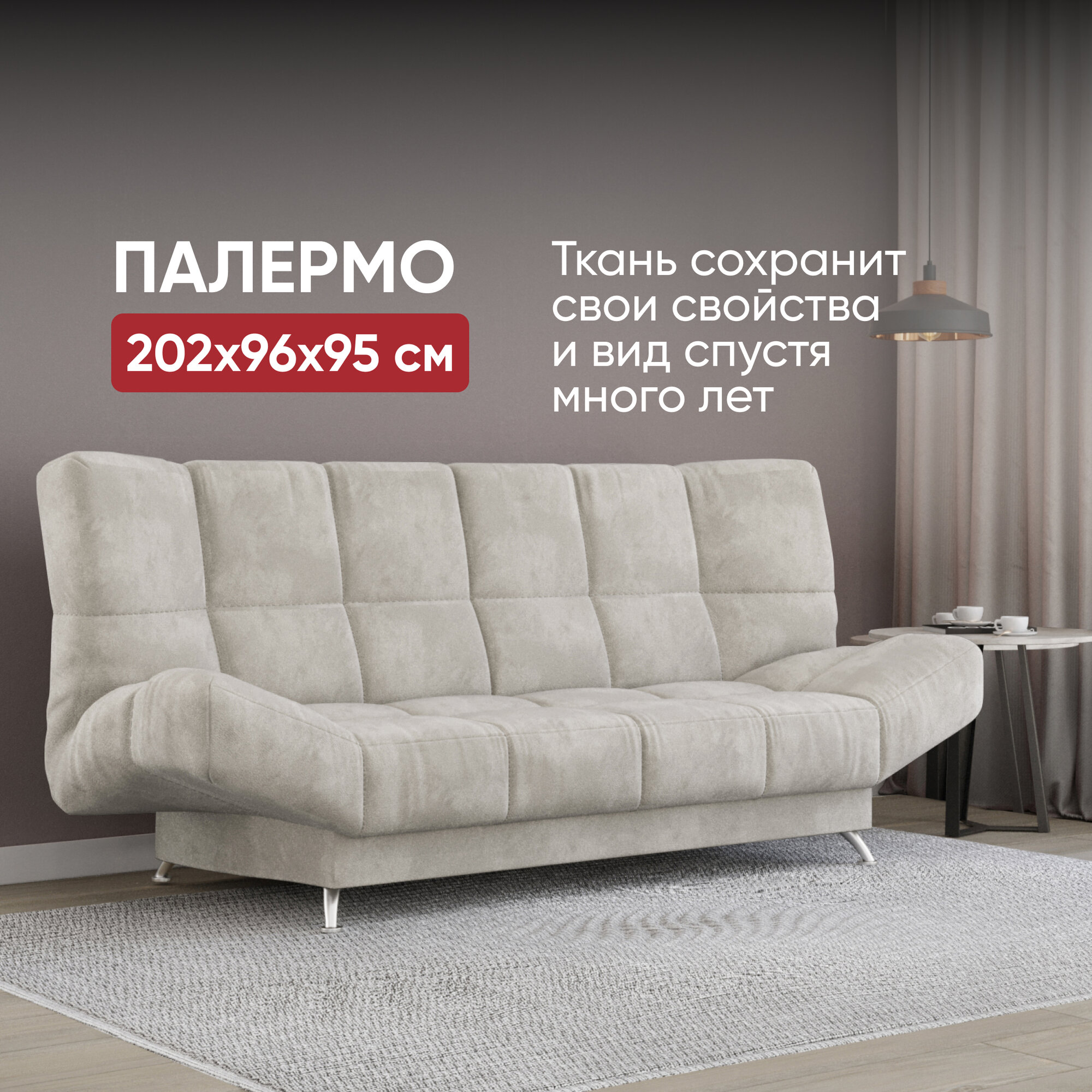 Диван-кровать раскладной Прямой, Клик-кляк, Беспружинный, 132х202 спальное место, Палермо, велюр бежевый