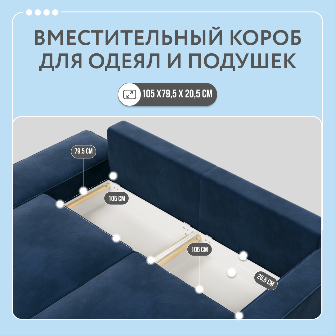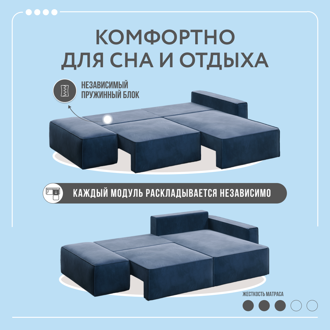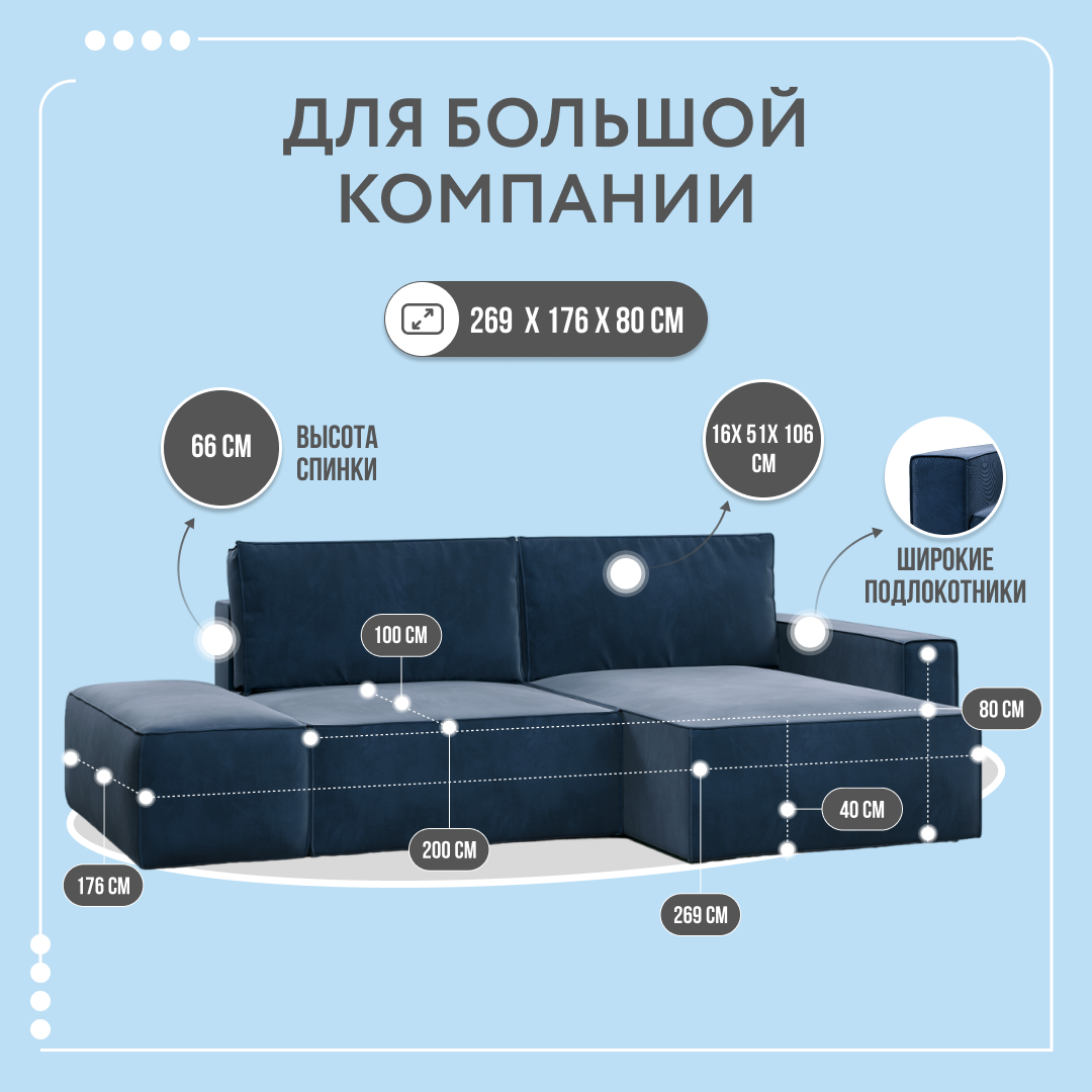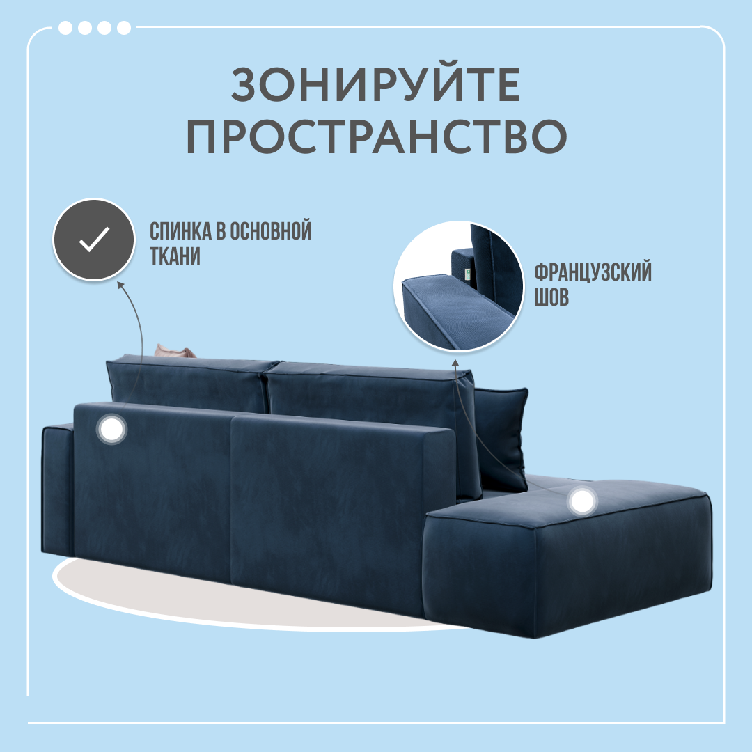 СохранитьУгловой тканевый диван с банкеткой Dee One Корсо синий 269x176x80 интересное: