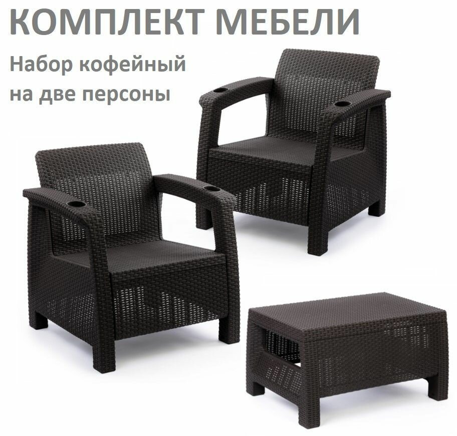 Купить Садовая мебель. Набор кофейный на 2 персоны (2 кресла + кофейный столик), мокко, без подушек