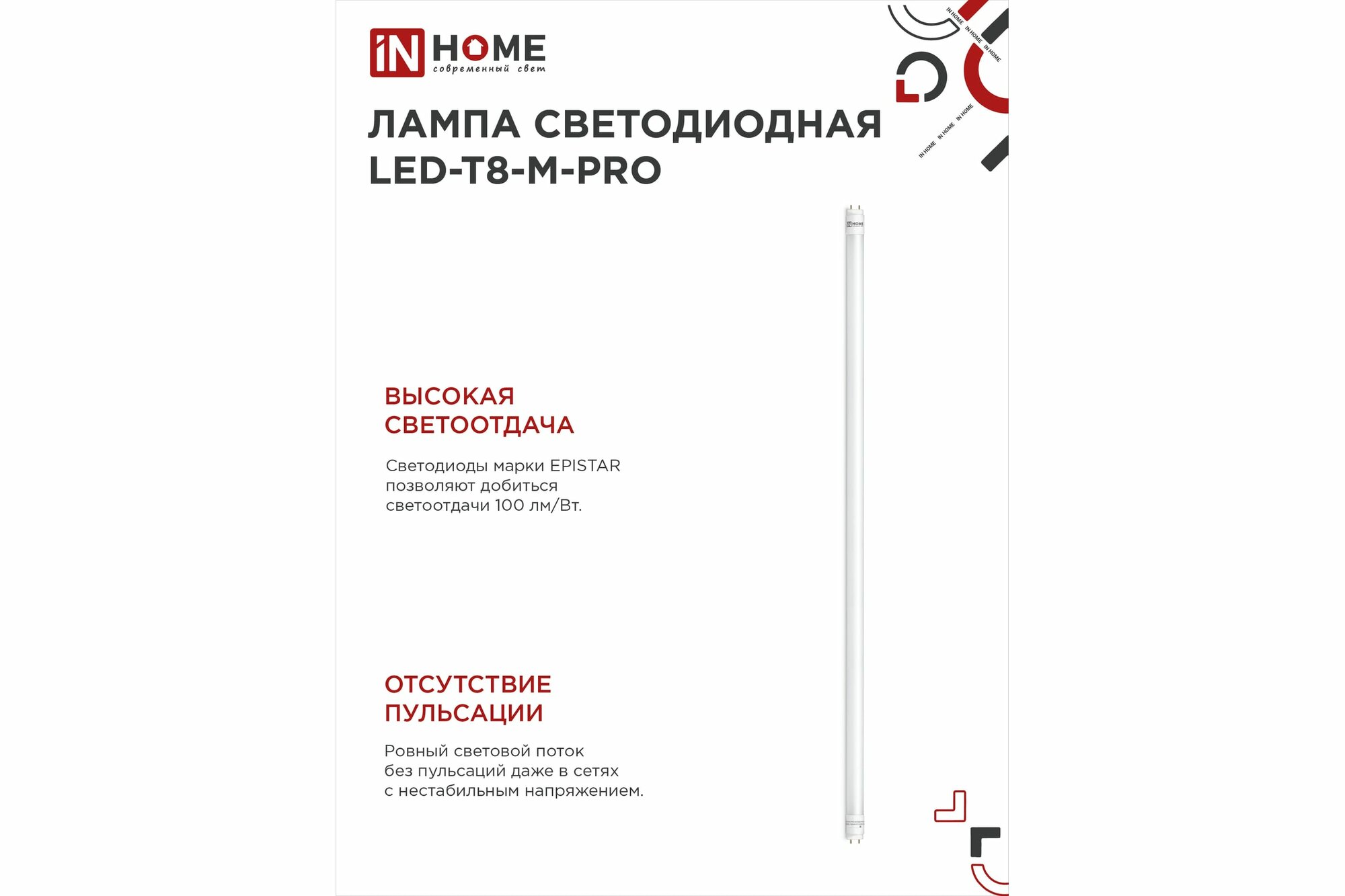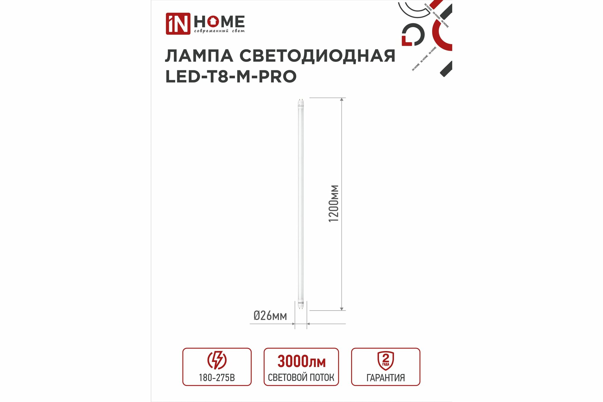 Лампа светодиодная LED-T8-М-PRO 30Вт 6500К G13 2440лм 230В 1200мм мат. IN HOME 4690612031026 ( 1шт. )