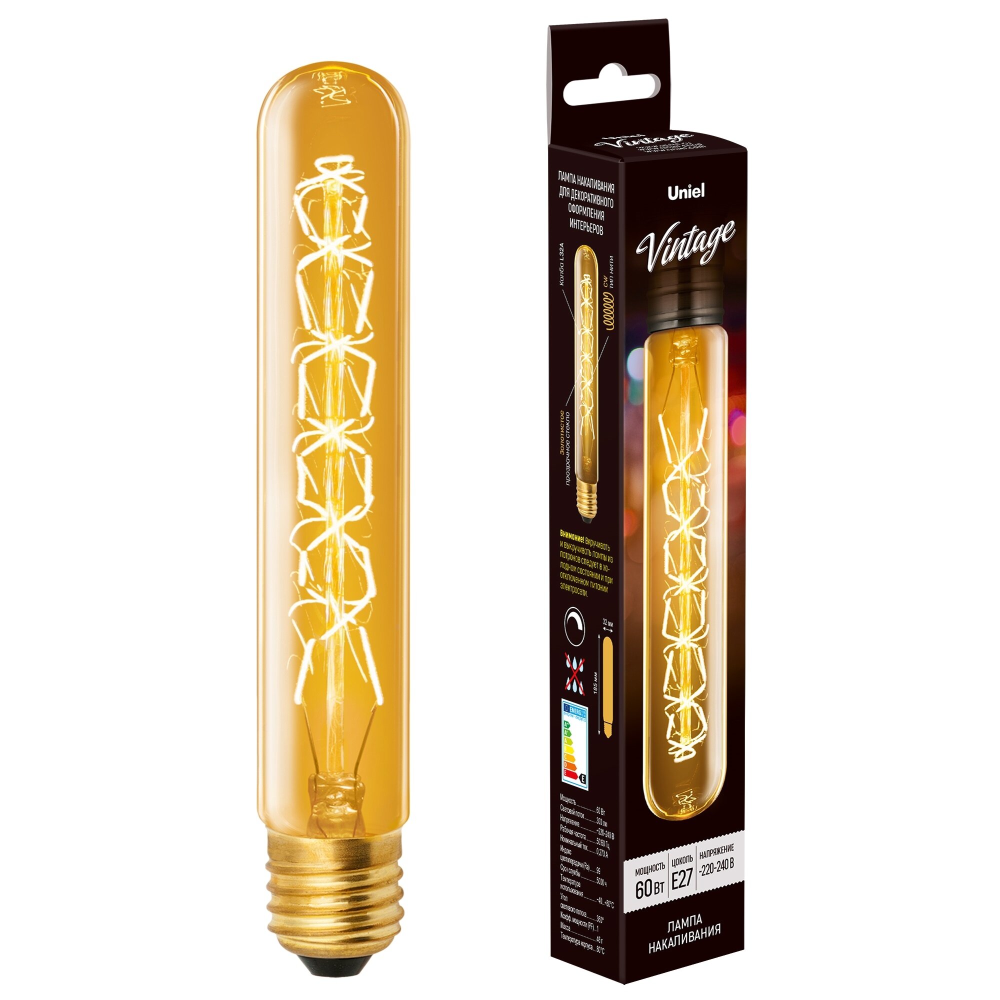 IL-V-L32A-60-GOLDEN-E27 CW01 Лампа накаливания Vintage. Форма цилиндр. длина 185 мм. Форма нити CW. Картон. ТМ Uniel