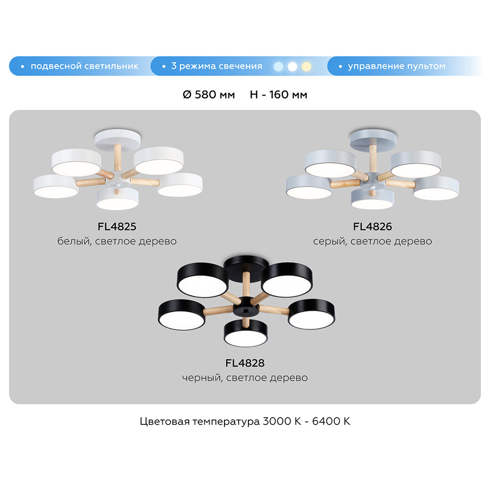 Подвесной светодиодный светильник с пультом FL4825/5 WH белый 3000K-6400K 65W D580*160 (ПДУ ИК)