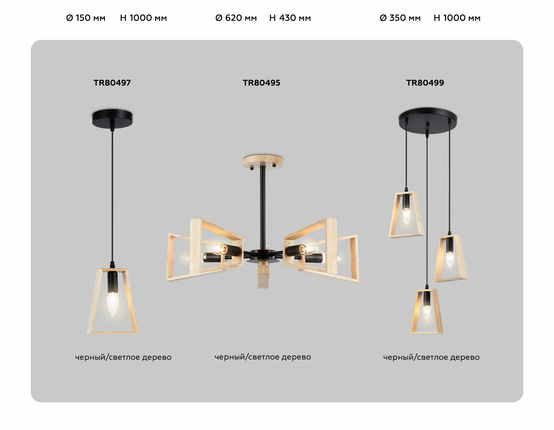 Подвесной светильник в стиле лофт Ambrella light TR8182/3 BK/LW черный/светлое дерево E27*3 max 40W 500*50*420